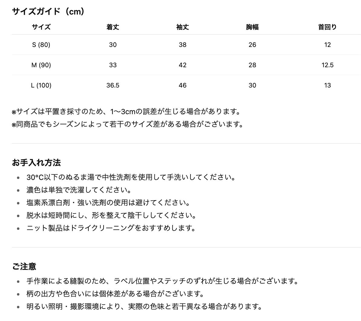 ニット製品はドライクリーニングをおすすめします。