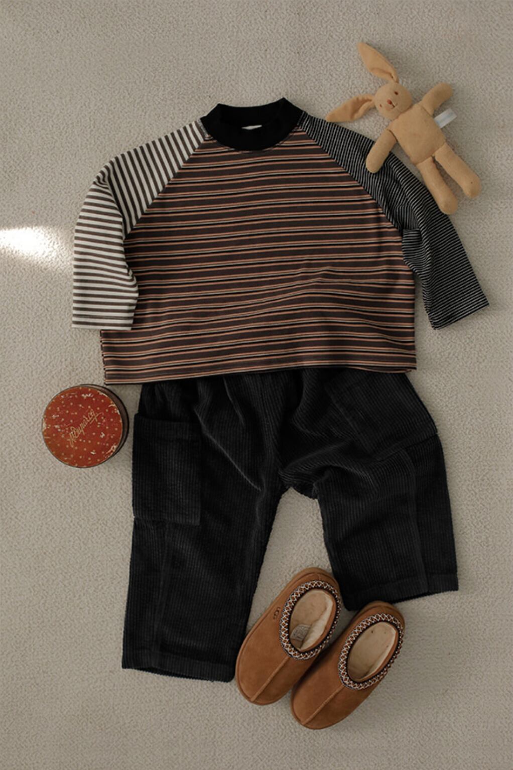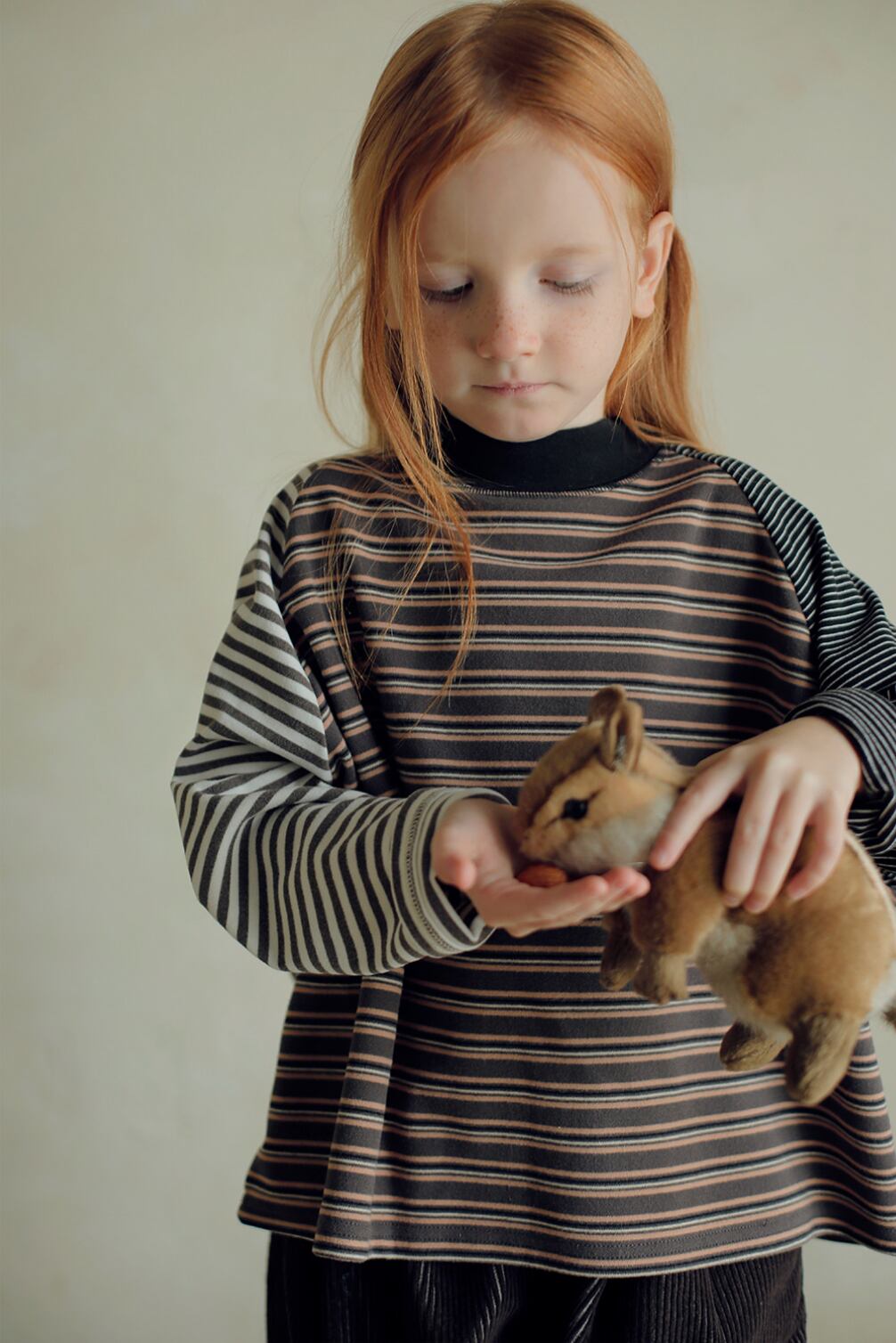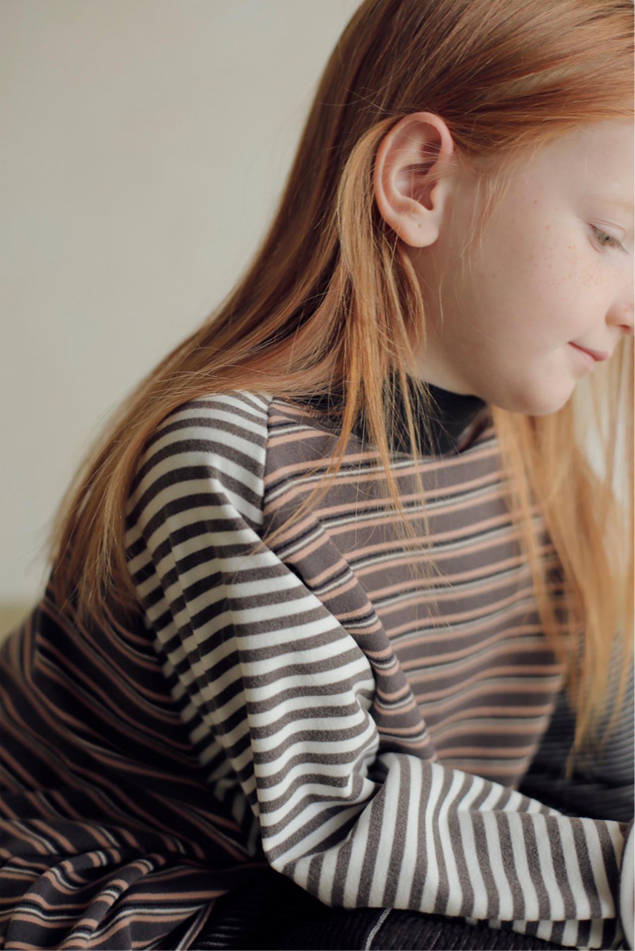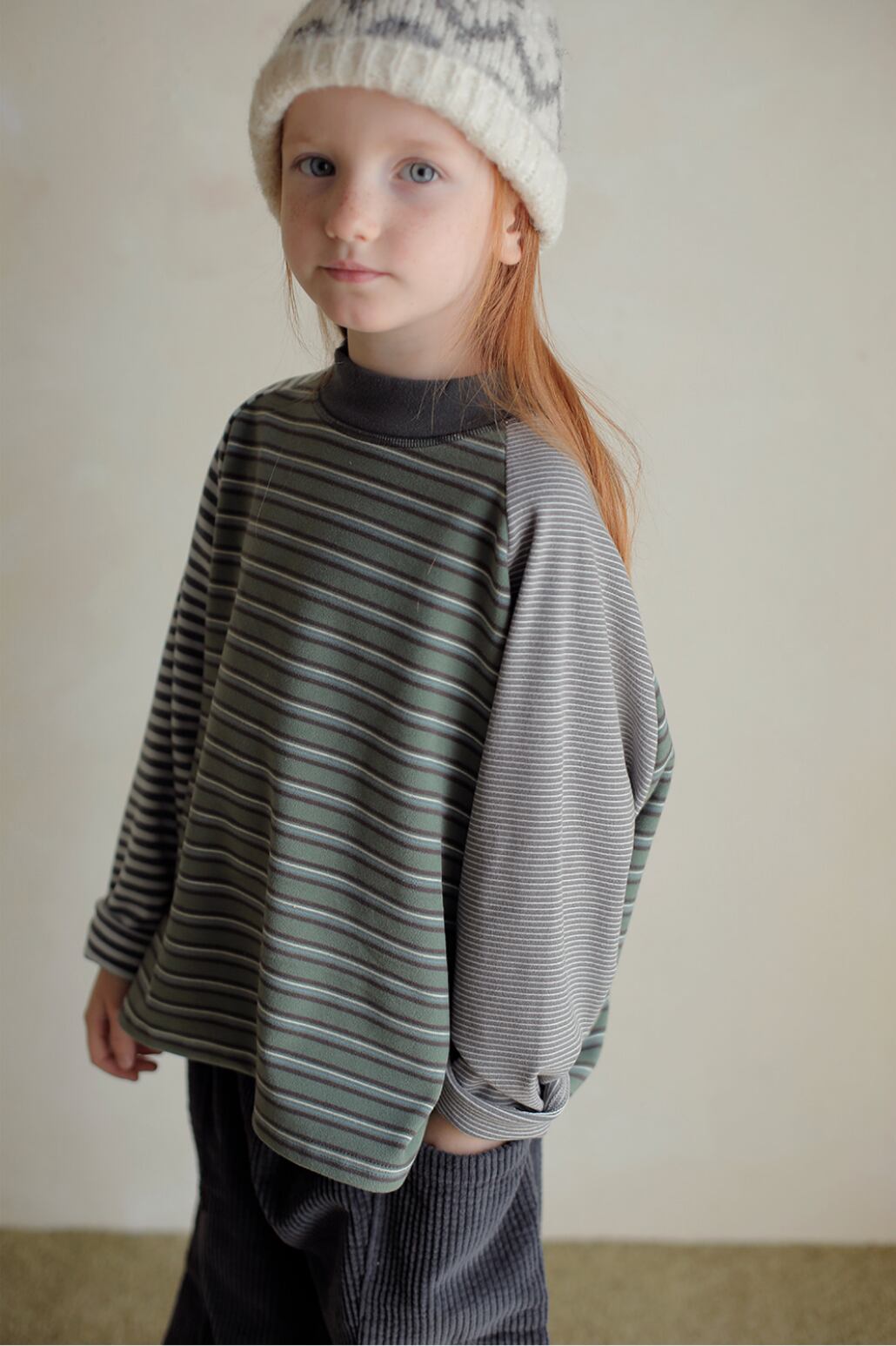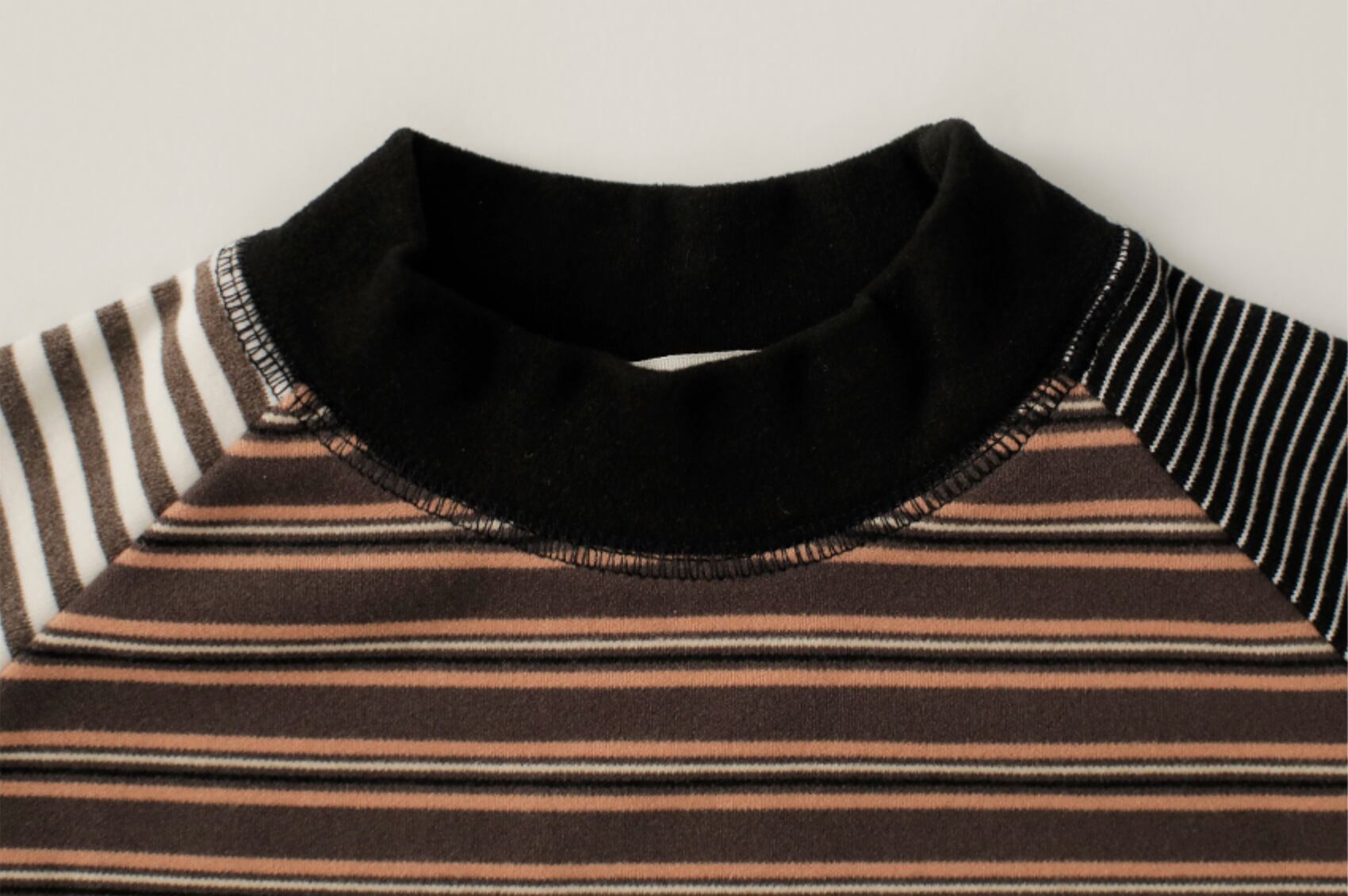 秋冬コレクションらしいくすみカラーと、コロンとしたシルエットが可愛いストライプTシャツ。