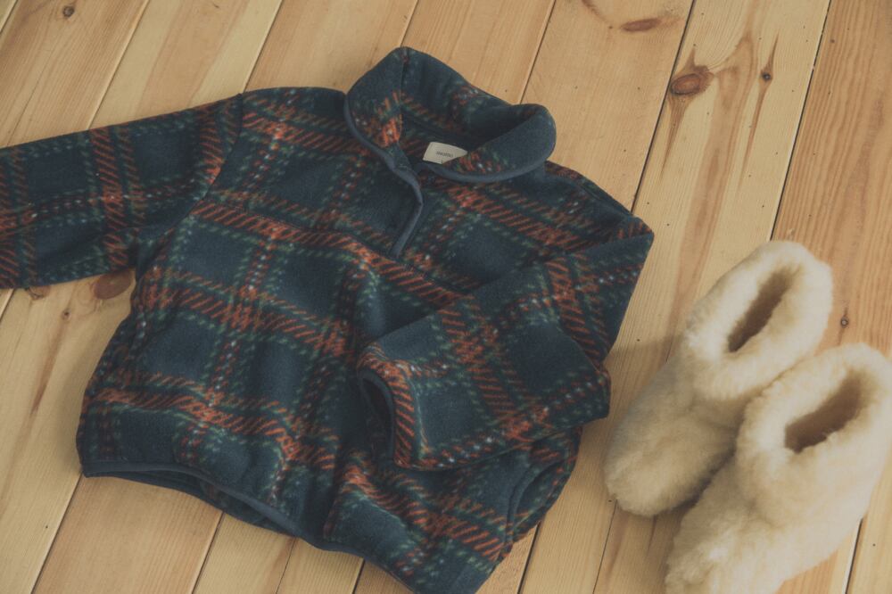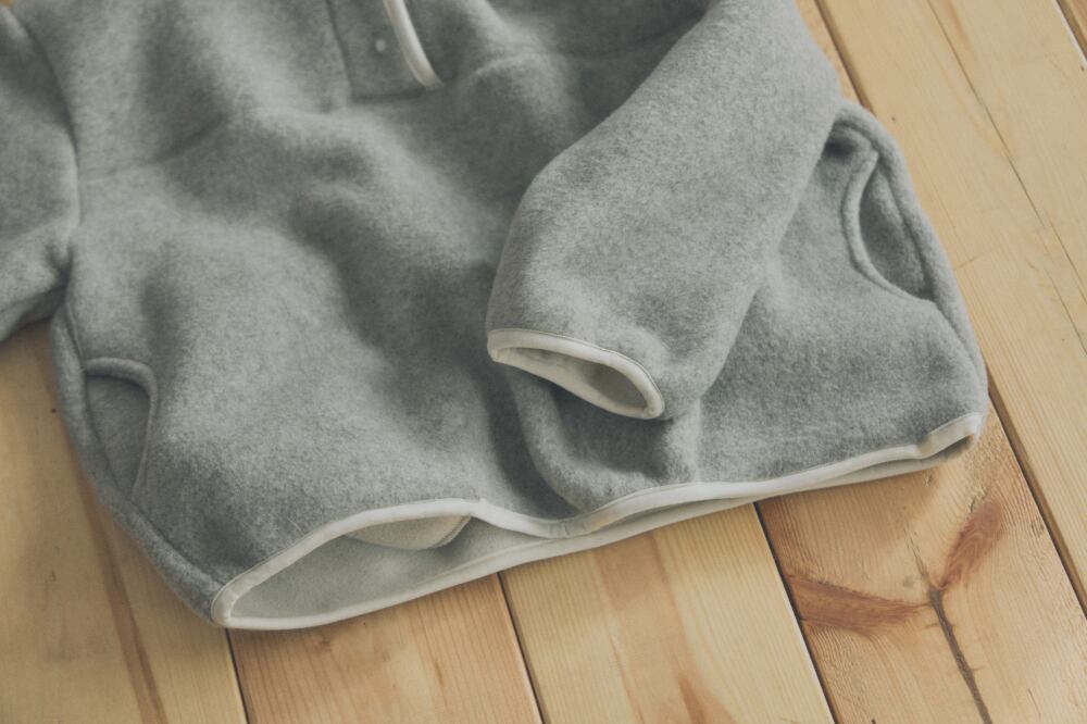 丸みのあるカラーデザインと、配色テーピングがアクセントになったフリースアノラック。