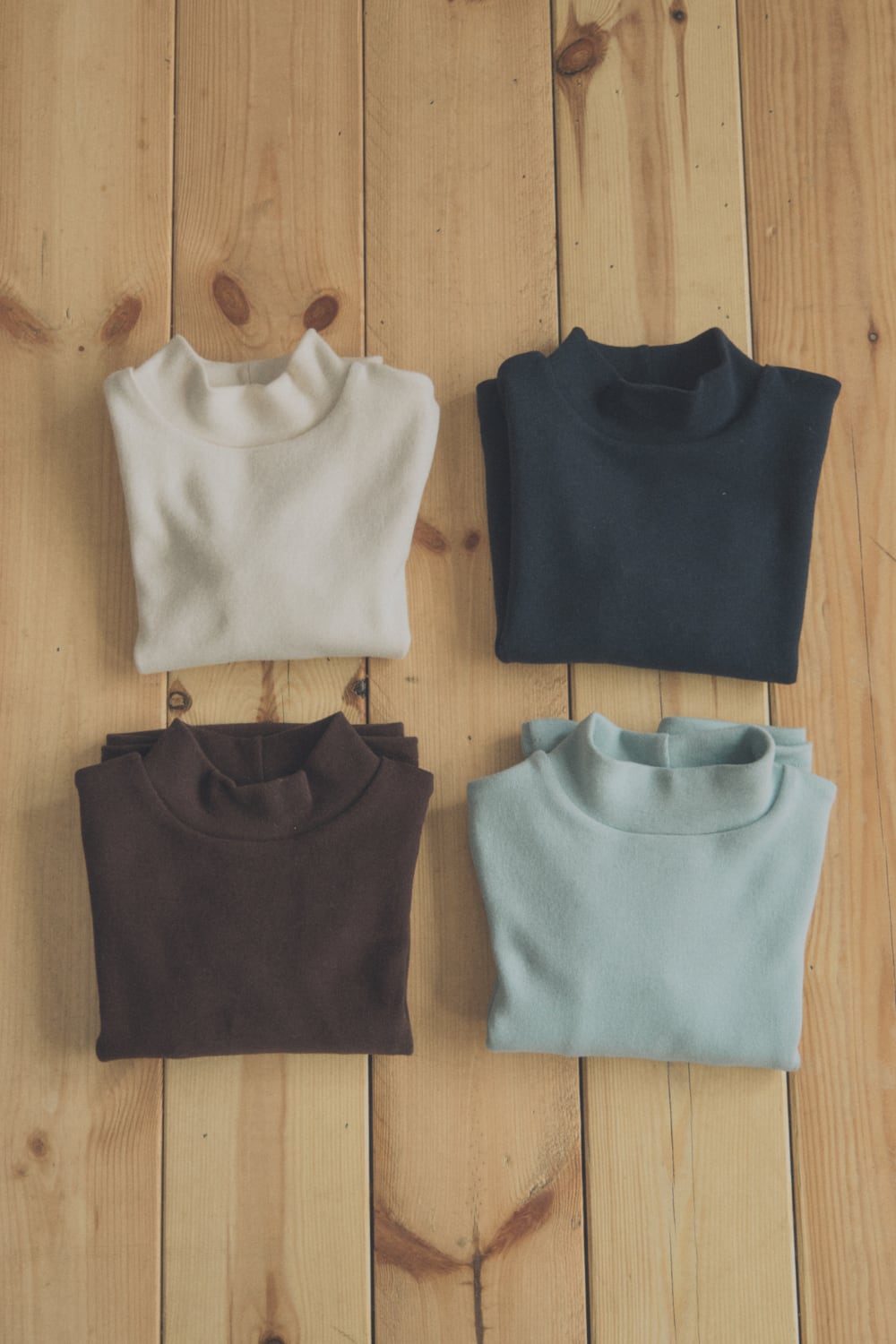 シンプルで合わせやすい4色展開で、秋冬のレイヤードに欠かせないベーシックトップスです。