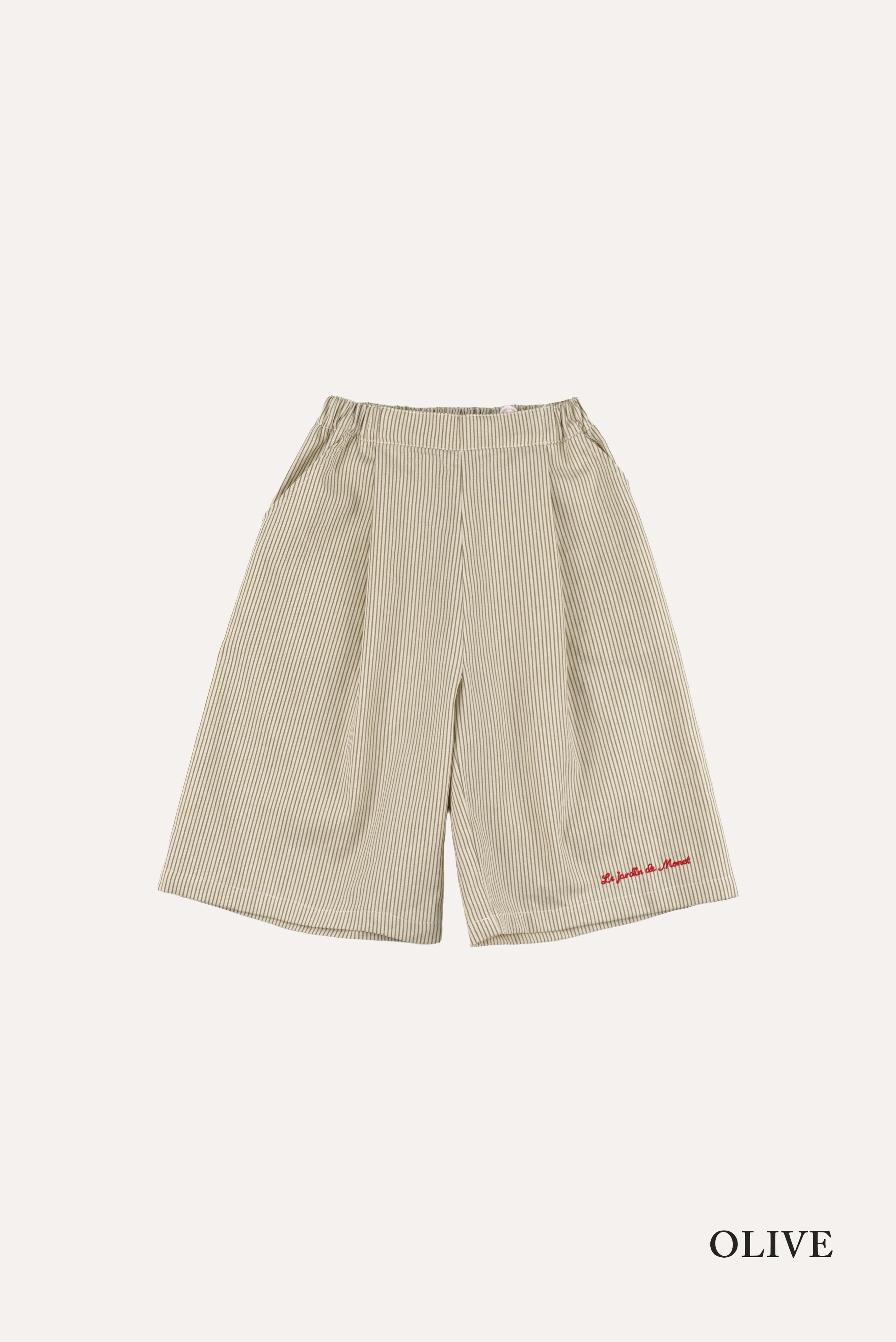 やわらかなコットン素材を使用し、サスペンダーデザインが印象的な一本。ほどよくゆとりのあるシルエットで、動きやすさと上品さを兼ね備えています。