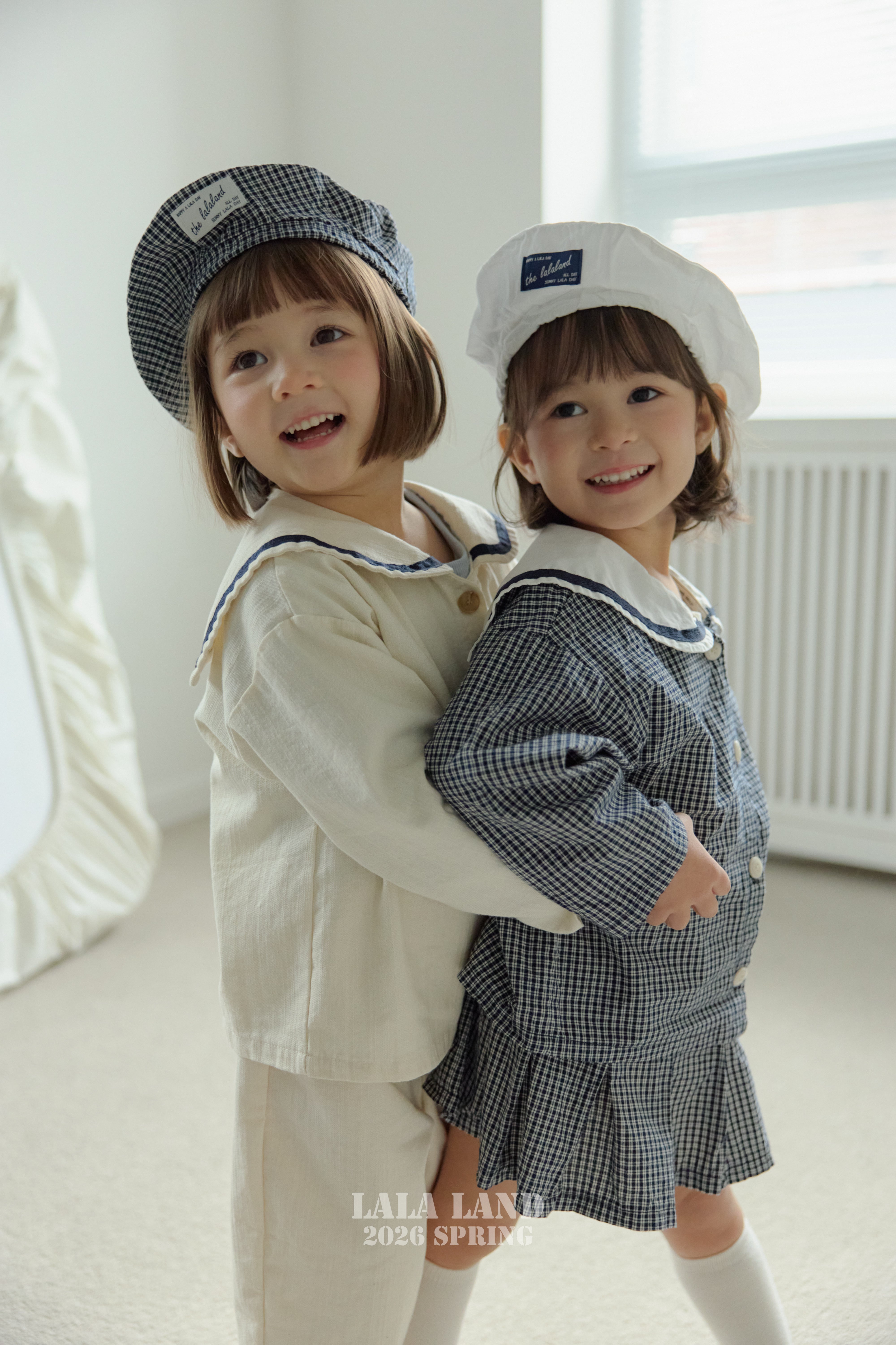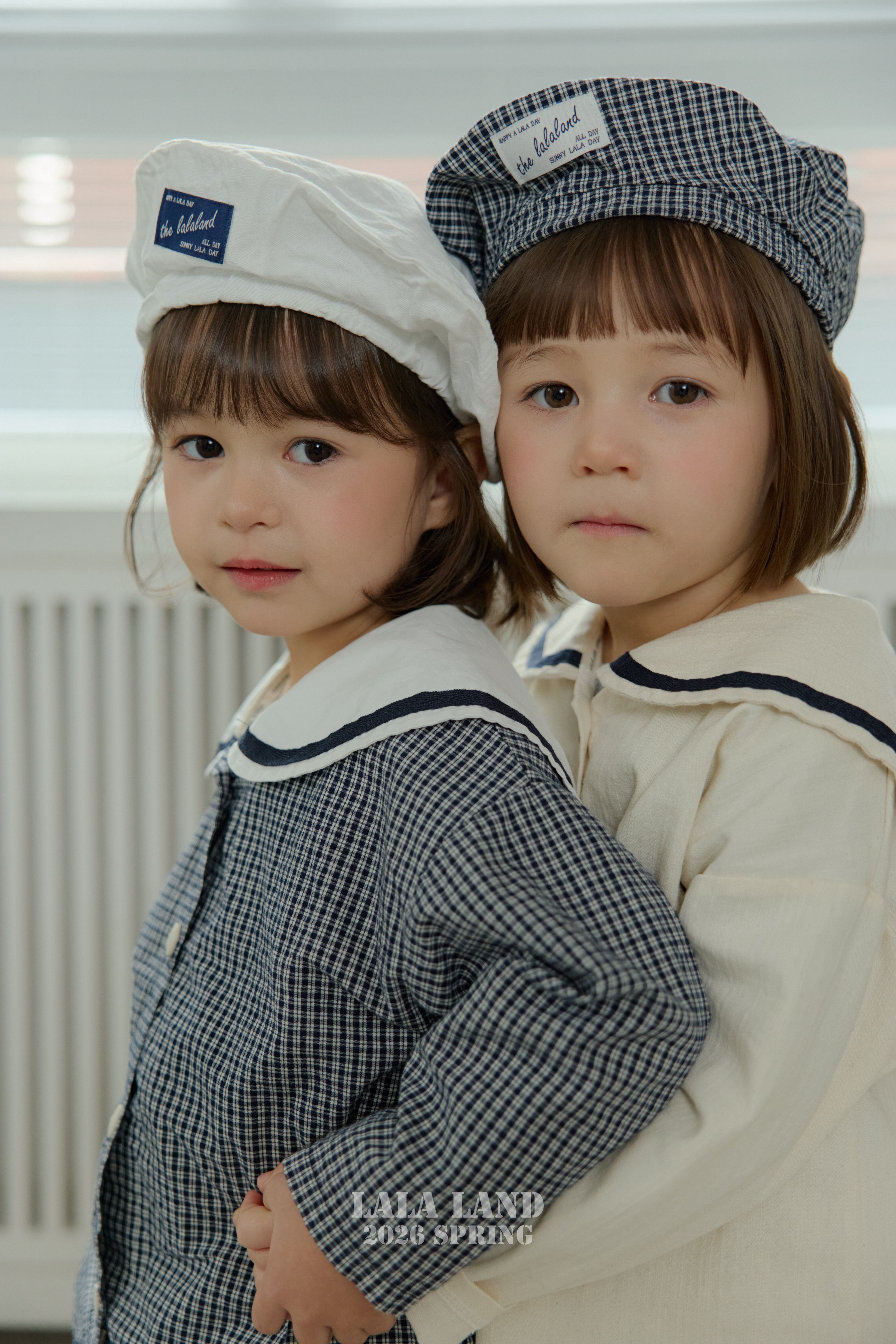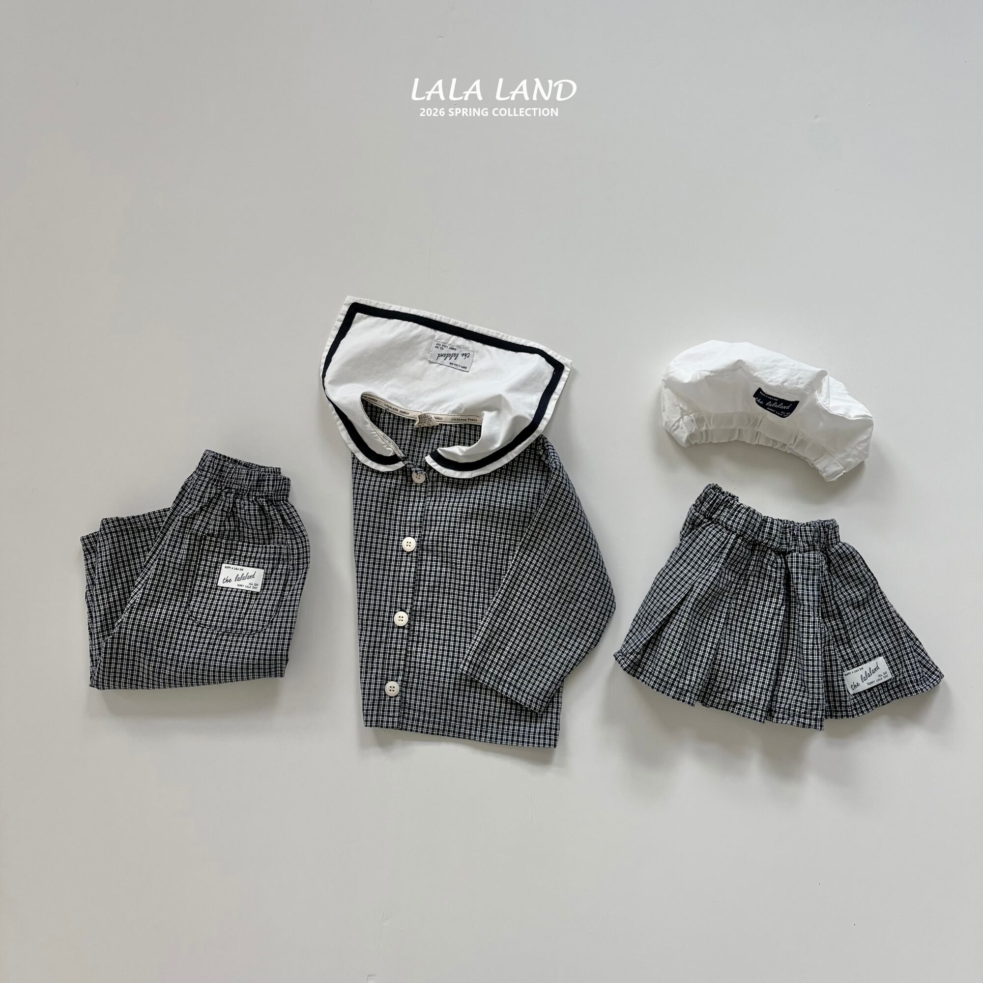 セーラーカラーが目を引く、クラシックで可愛らしいキッズブラウス。ナチュラルな配色とチェック柄で、きちんと感がありながらも日常使いしやすい一枚です。