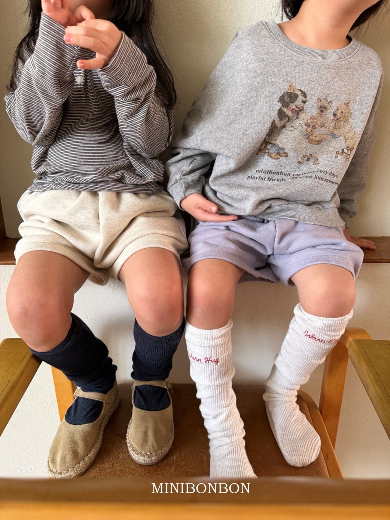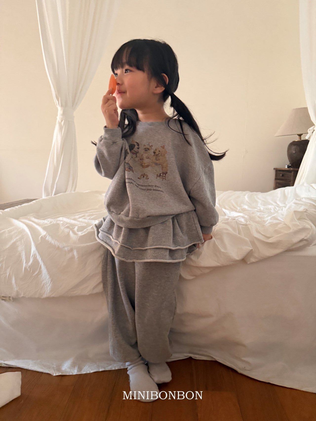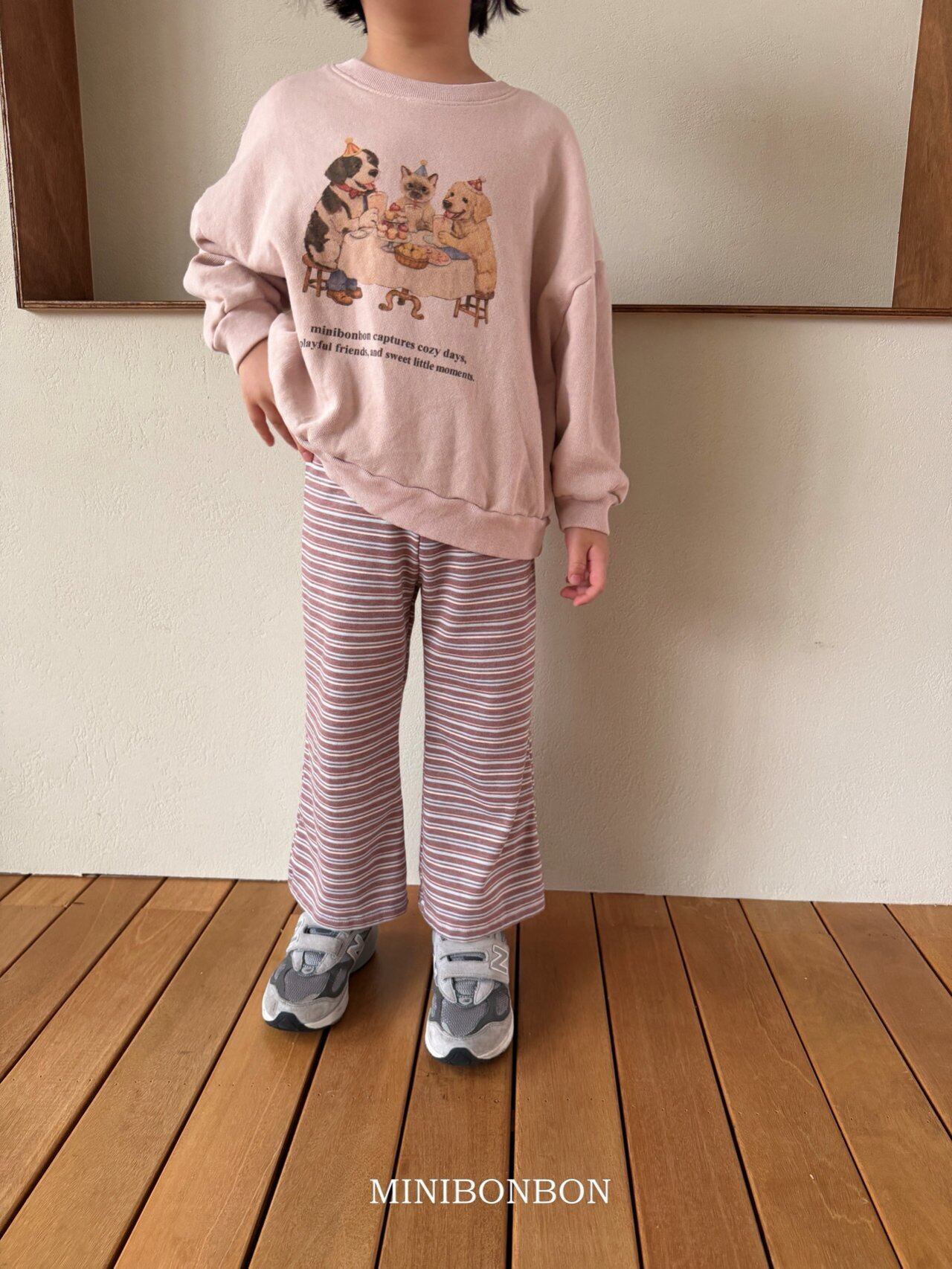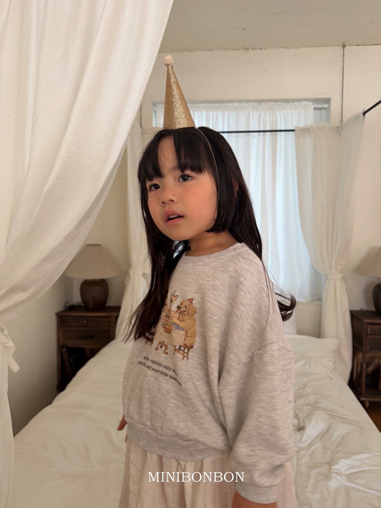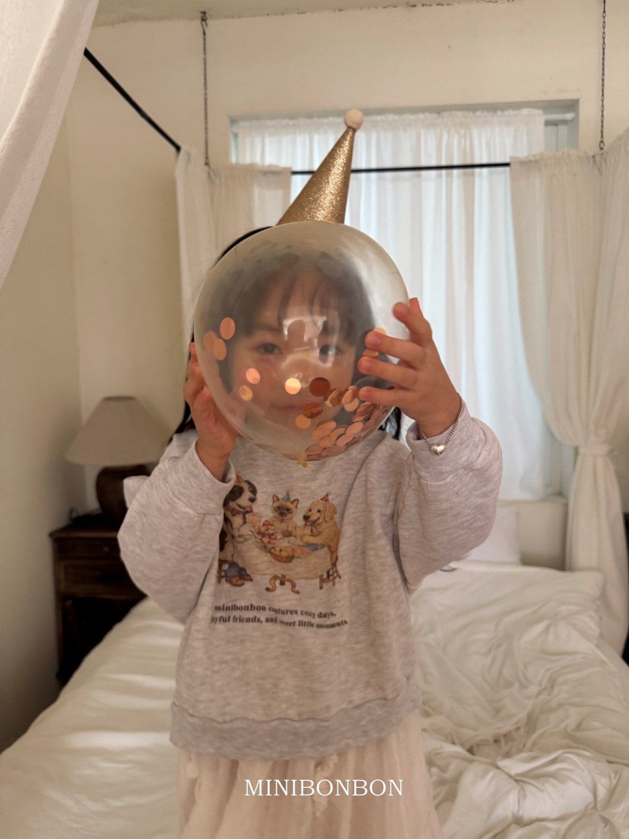 フロントいっぱいに描かれた、動物たちのあたたかなパーティーシーンが目を引くminibonbonらしい世界観あふれるスウェット。