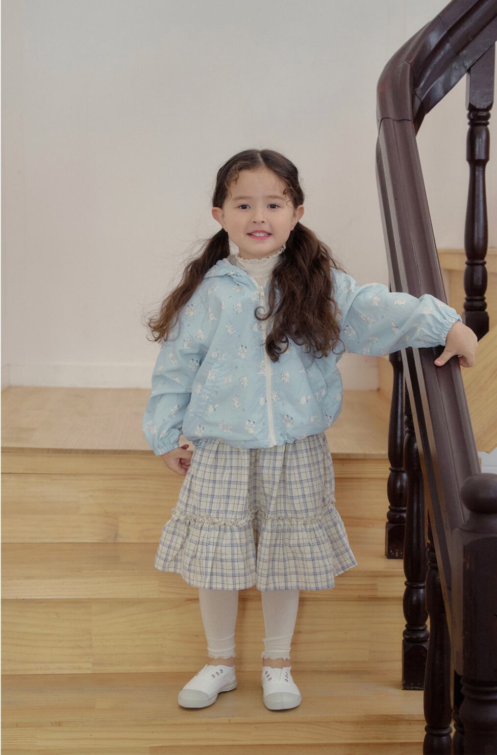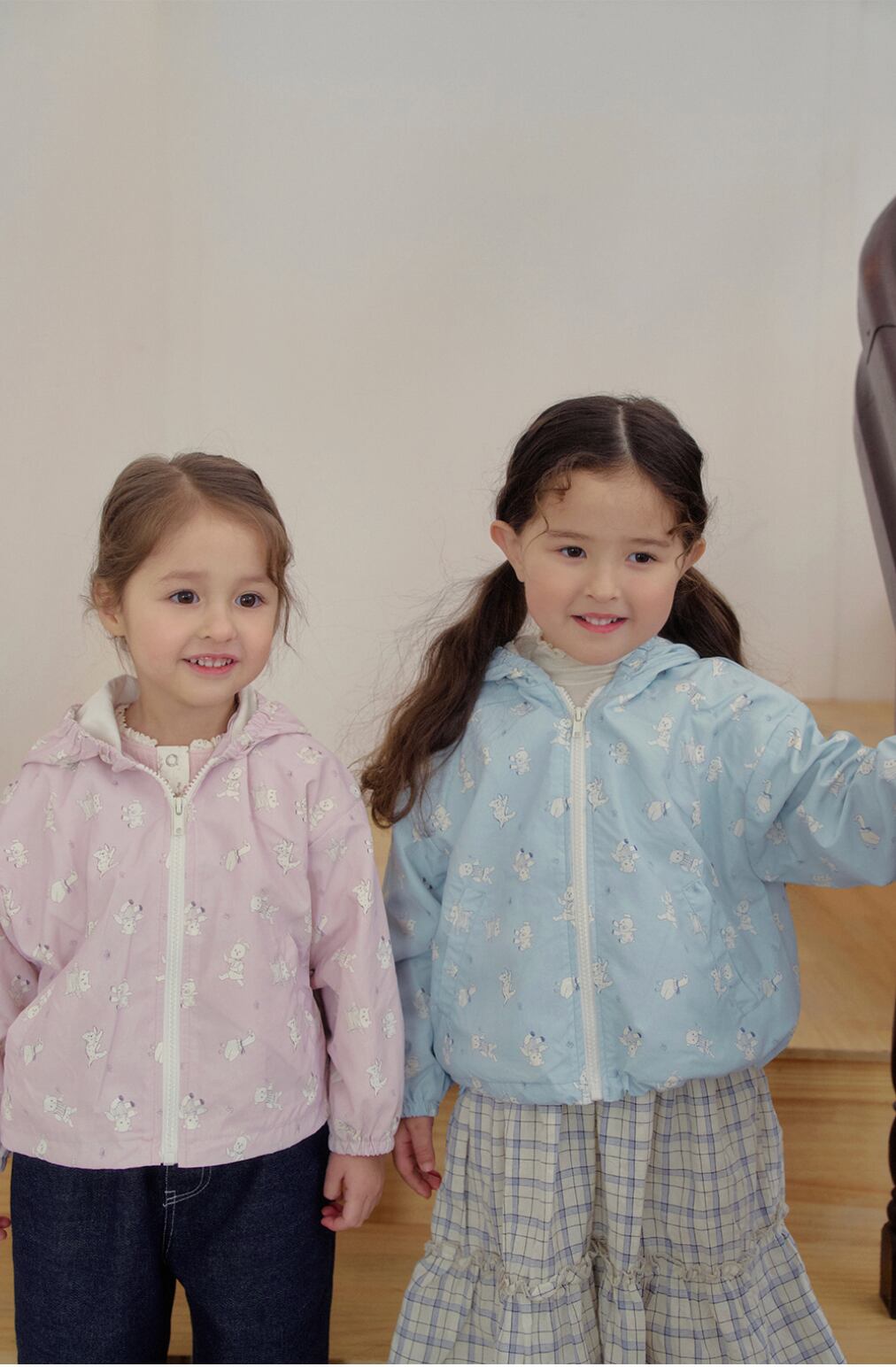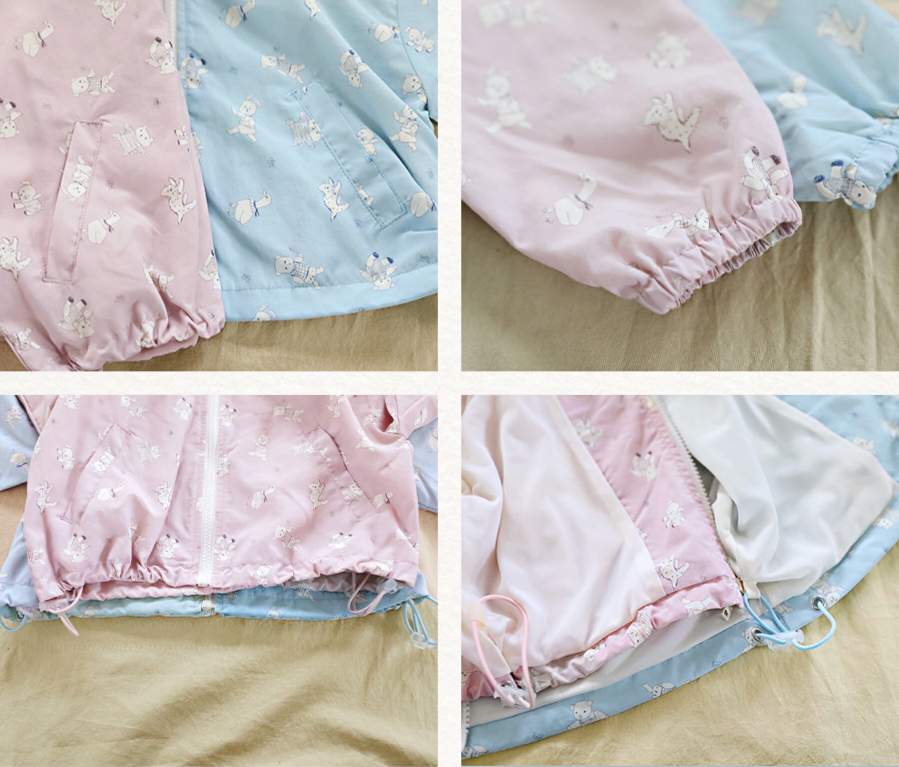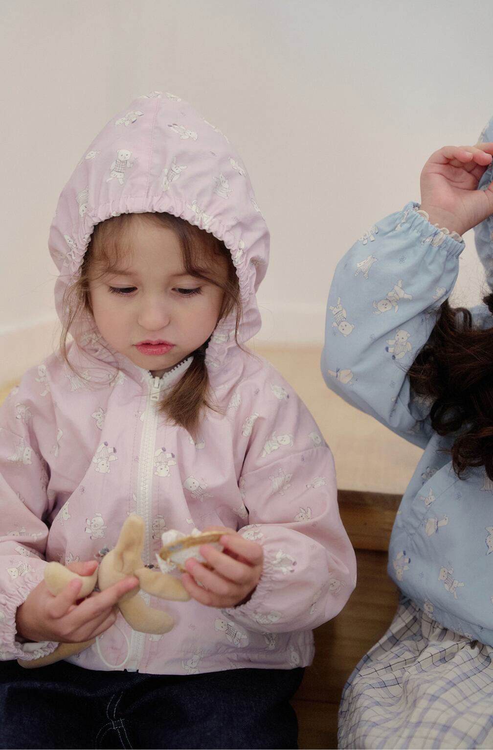 軽やかなナイロン素材で仕立てられたフード付きウィンドジャケット。全面に施された愛らしいプリントが、コーディネートにやさしいアクセントを添えてくれます。