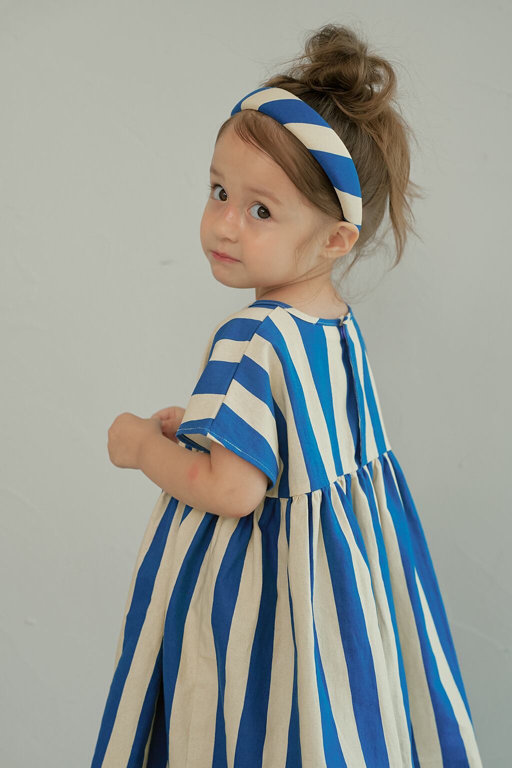 大胆なストライプ柄が印象的なヘアバンド。momohanipopoらしいグラフィカルなデザインが、コーディネートのアクセントになります。