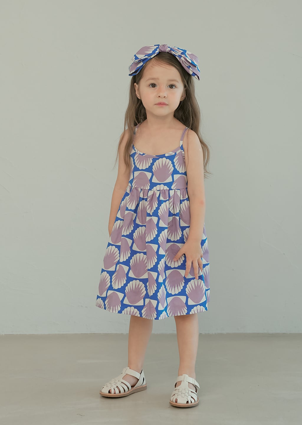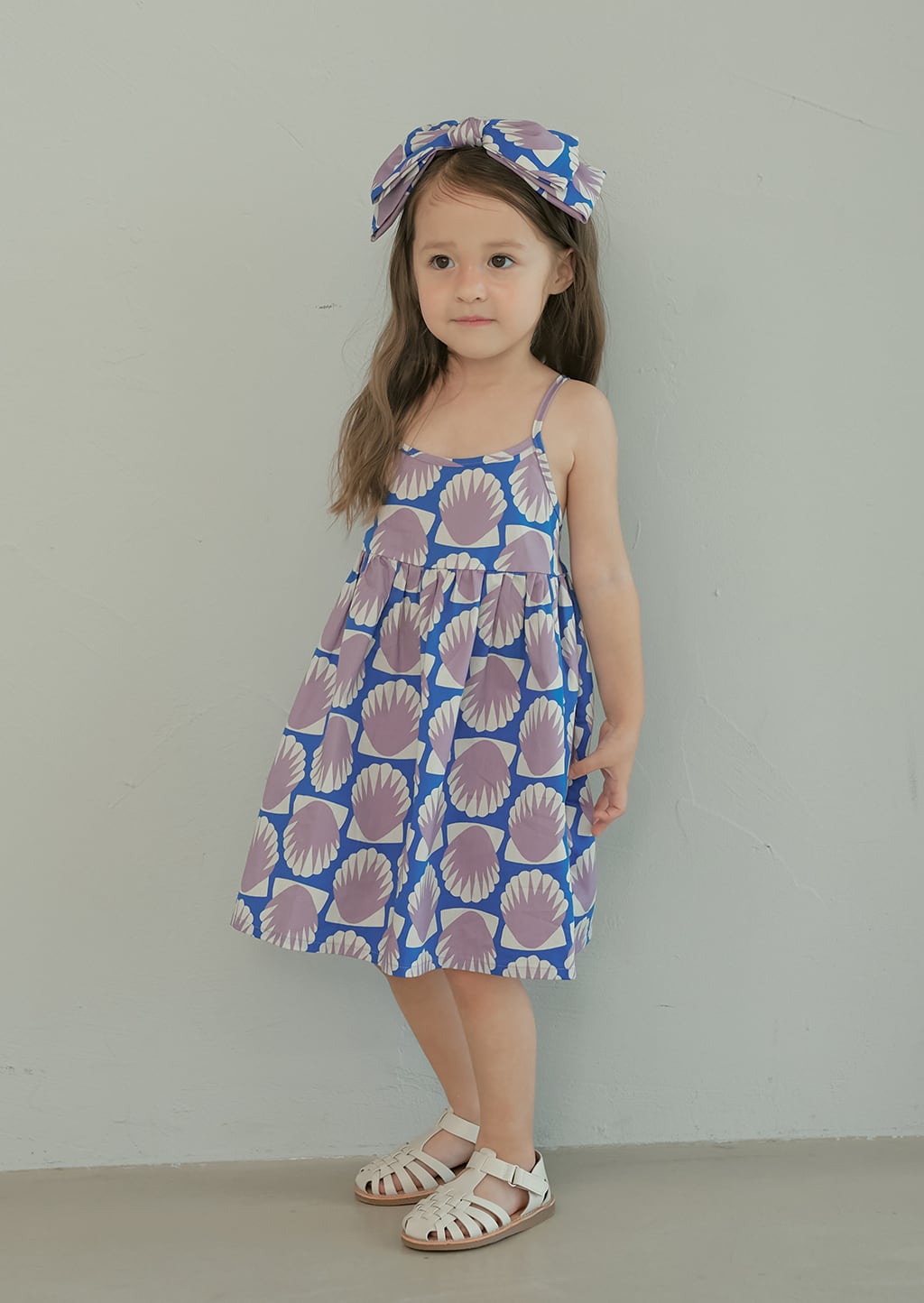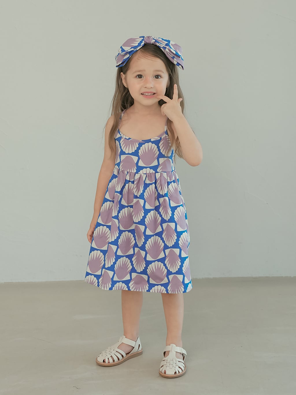 貝殻モチーフのプリントが印象的なサマードレス。momohanipopoらしいアート感のあるデザインが魅力の一着です。