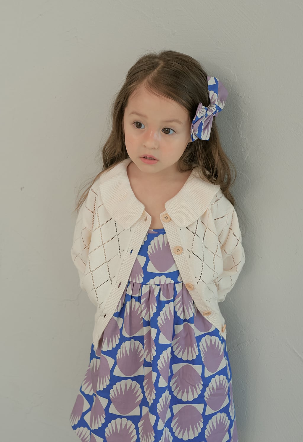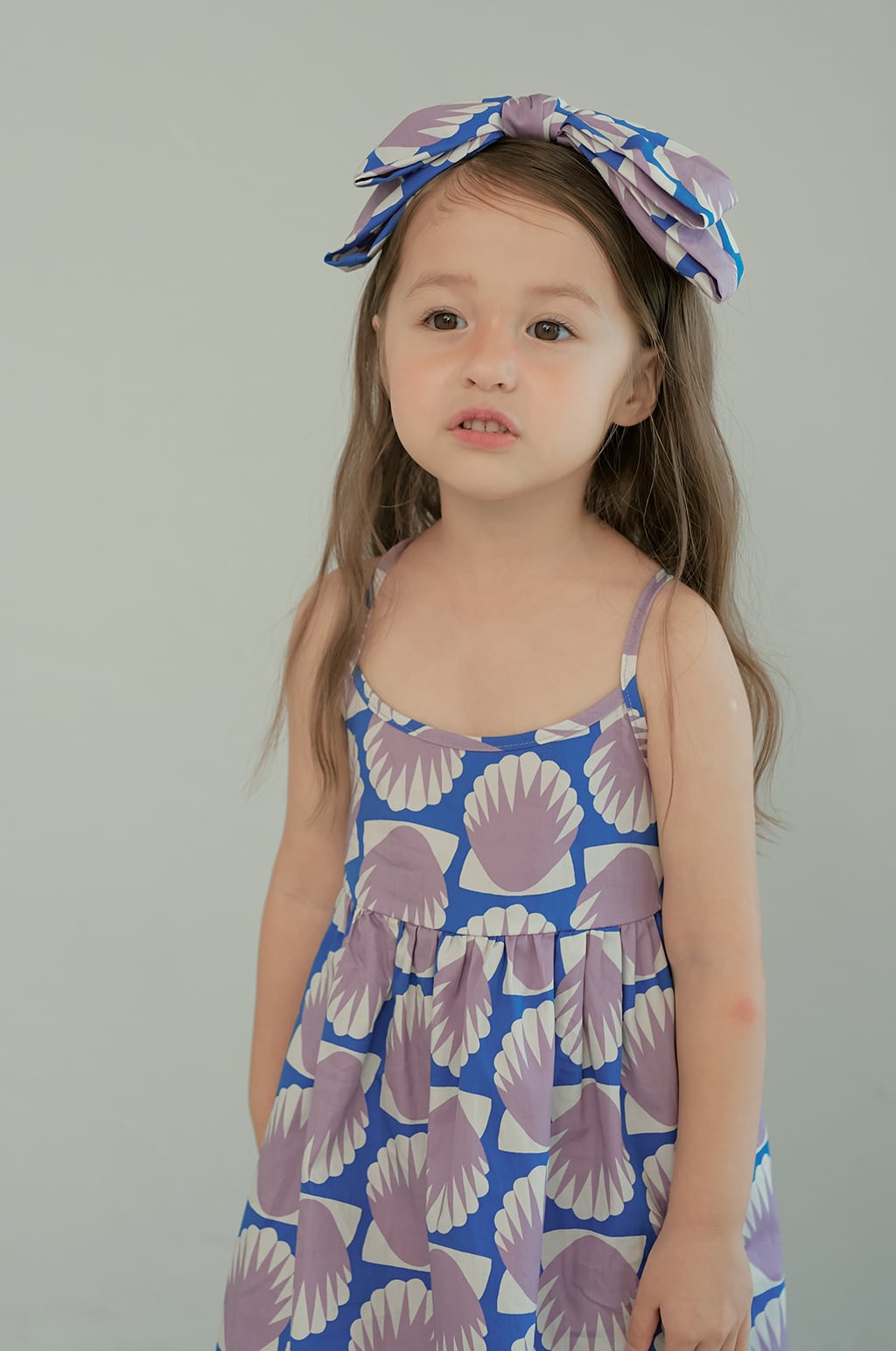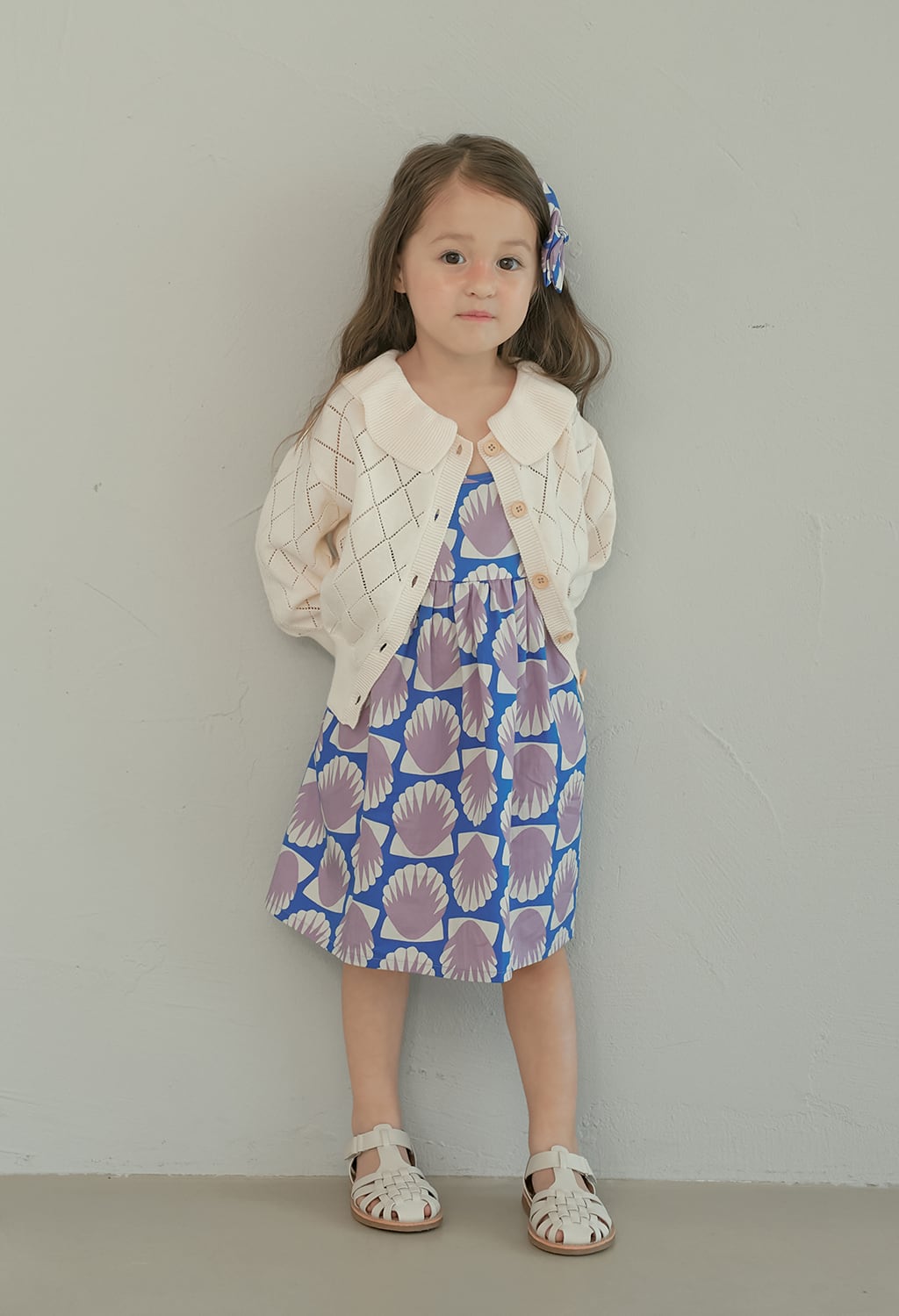 貝殻モチーフのプリントが印象的なサマードレス。momohanipopoらしいアート感のあるデザインが魅力の一着です。