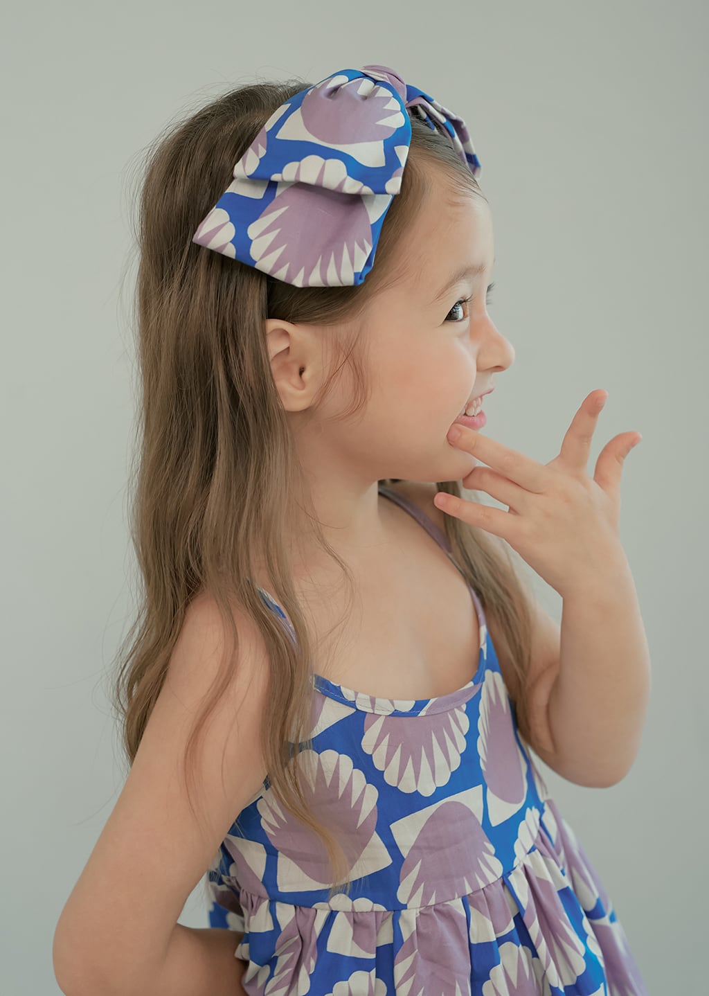 貝殻モチーフのプリントが印象的なヘアアクセサリー。momohanipopoらしいアート感のあるデザインが魅力です。