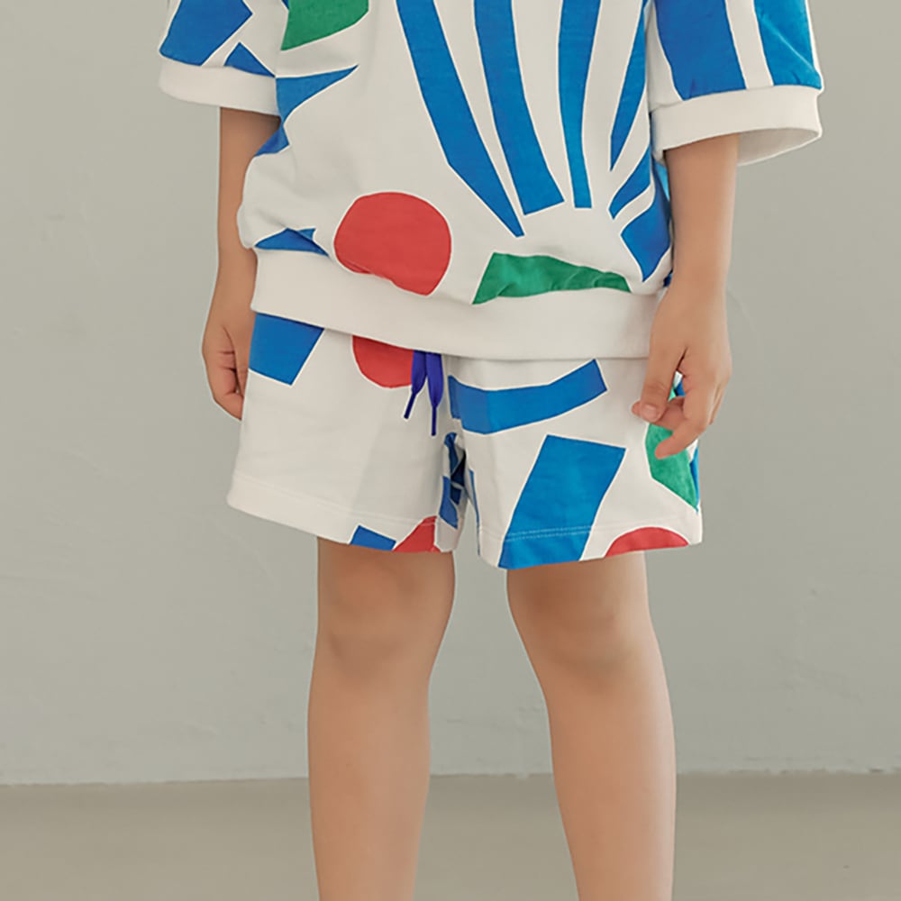 大胆なペーパーカット風プリントが印象的なショーツ。。やわらかなコットン100%素材で、軽く快適な着心地です。