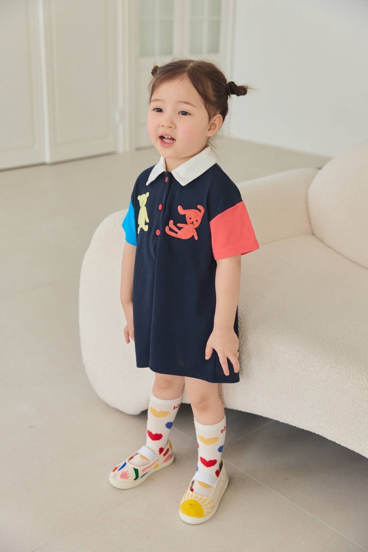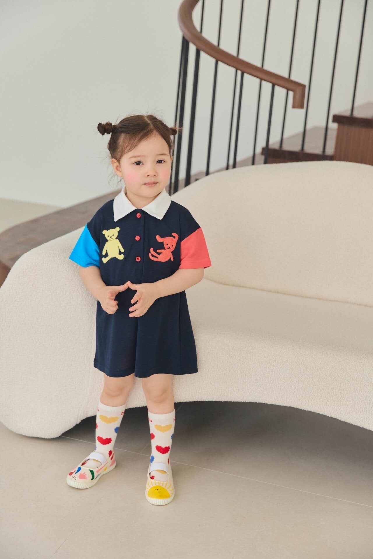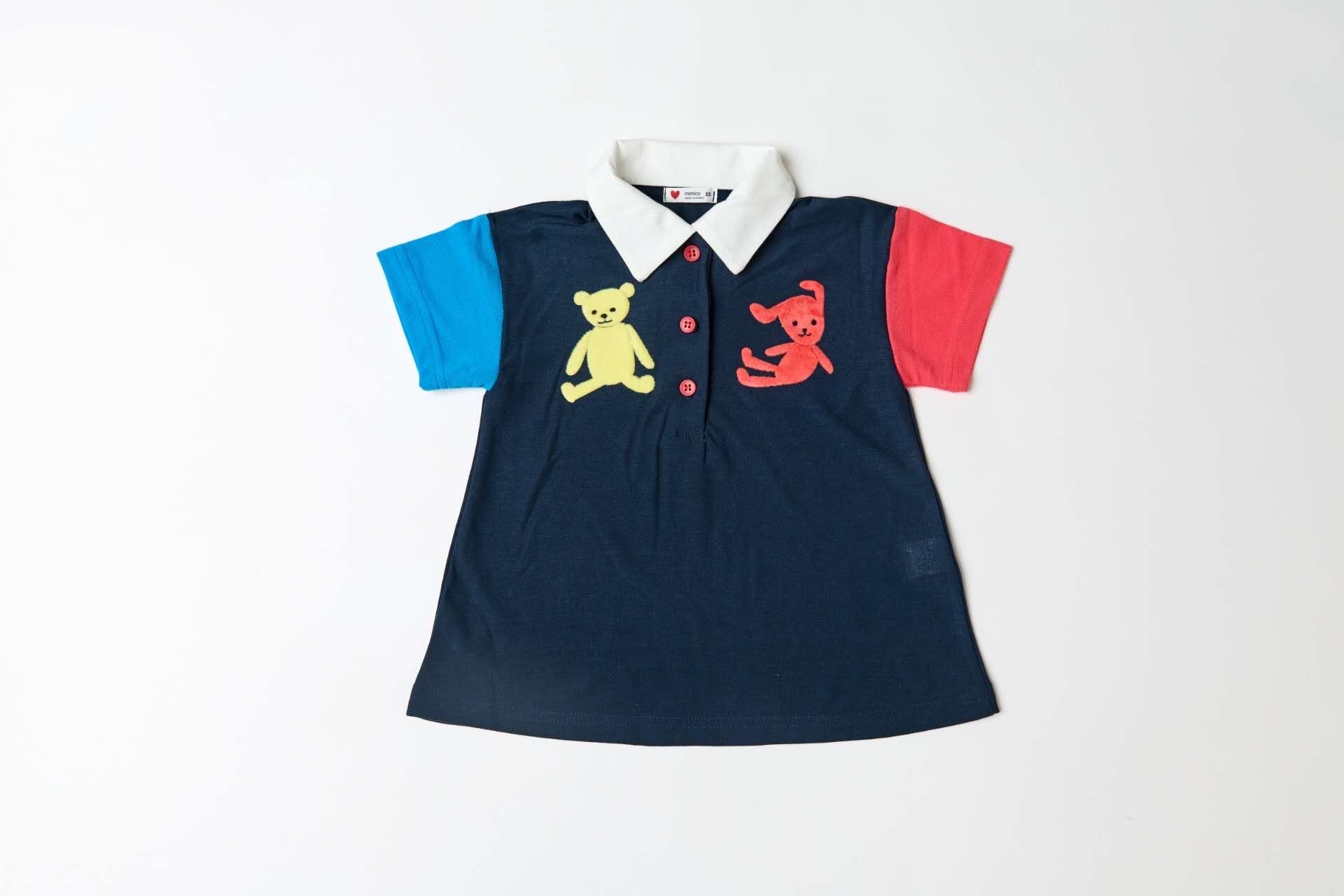 配色切り替えのポロデザインにベアモチーフをあしらったワンピース。