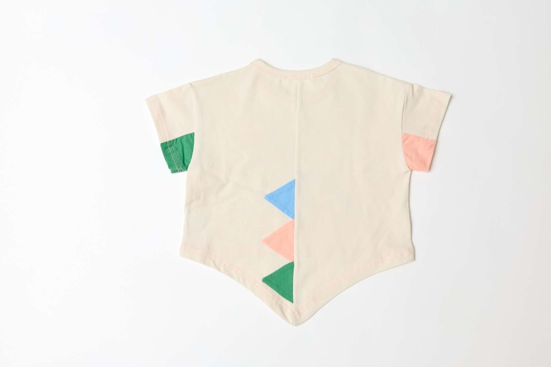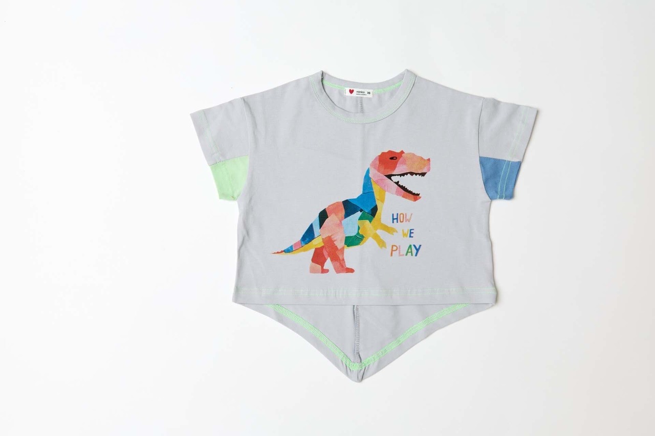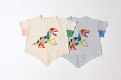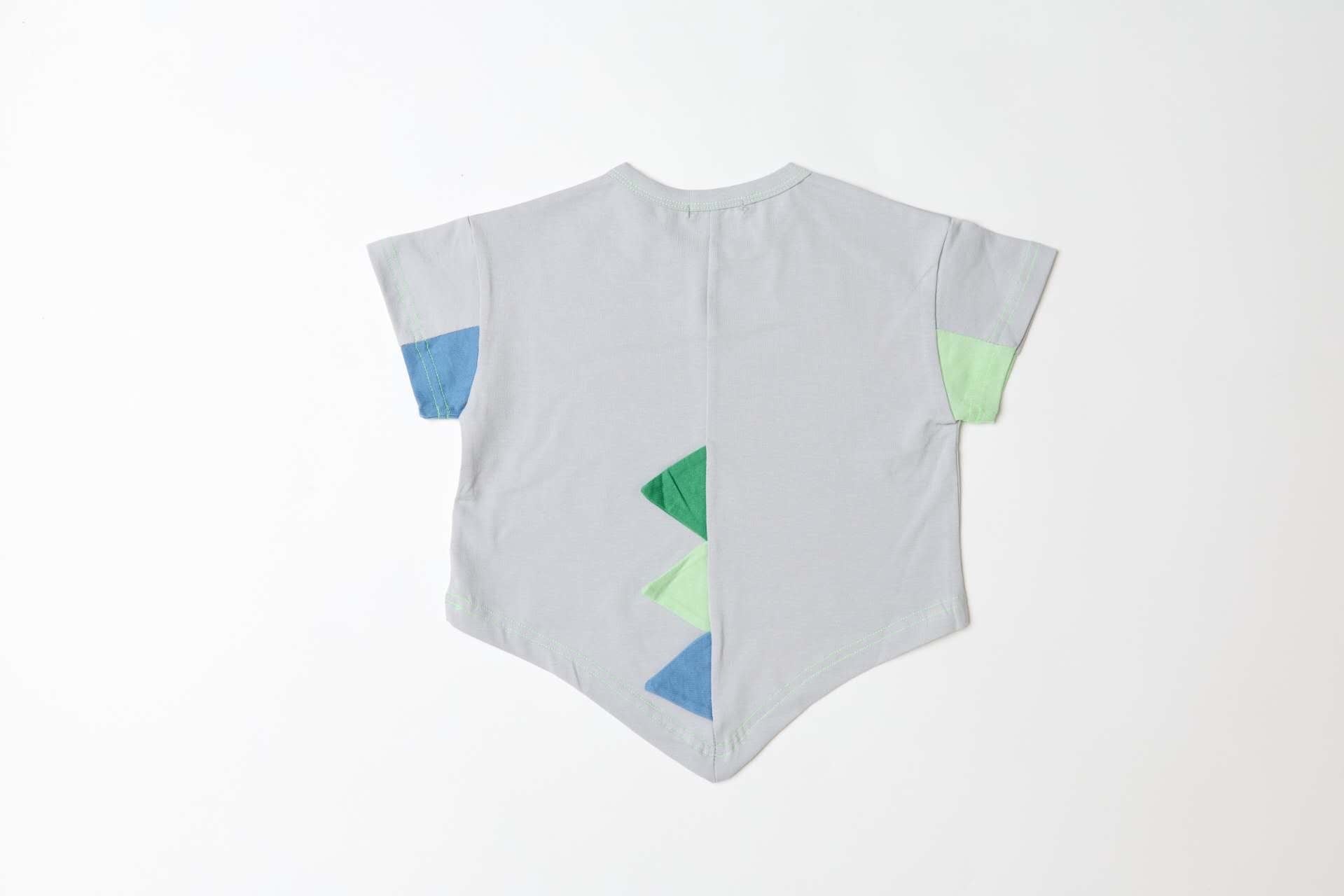 フロントに恐竜モチーフをあしらい、バックスタイルには立体的な背びれデザインをプラスしたユニークなTシャツ。