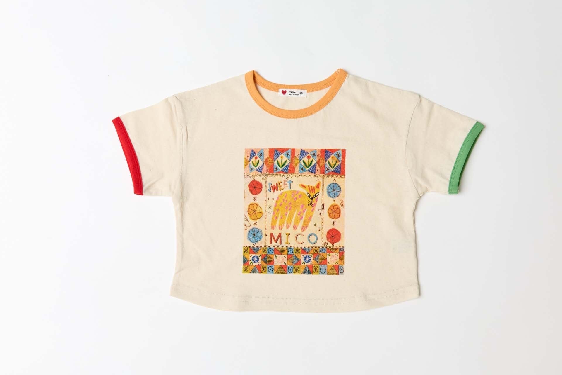 キャッチーなアニマルプリントが目を引くTシャツに、襟元や袖口の配色デザインがアクセントになった遊び心のある1枚。