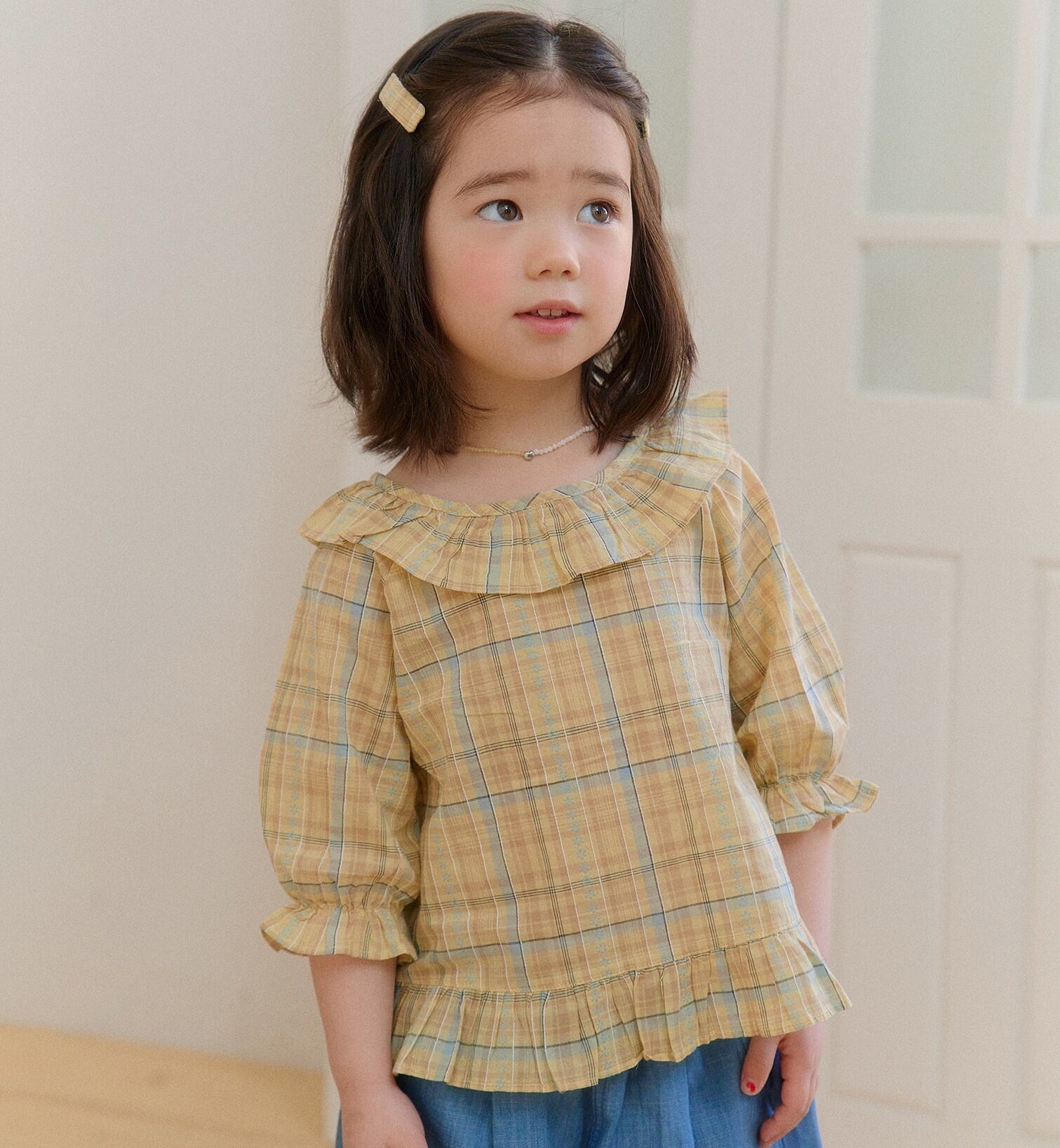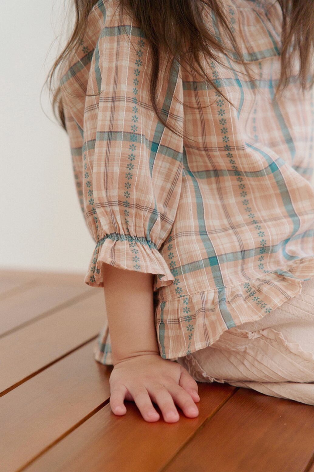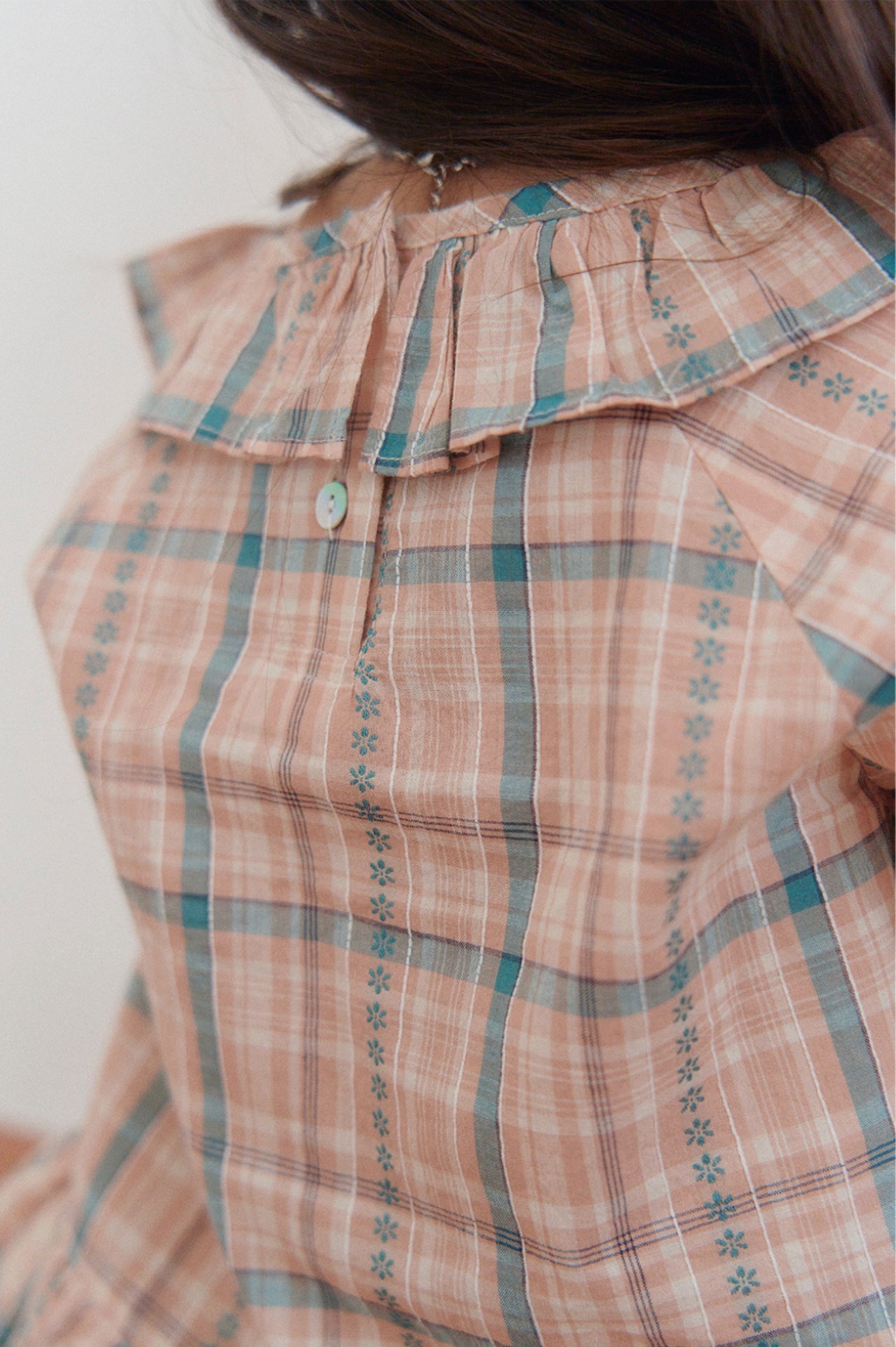 やわらかなチェック柄が印象的な、軽やかなロングブラウス。ナチュラルな色合いと細かな柄が、どこかクラシカルでやさしい雰囲気を演出してくれます。
