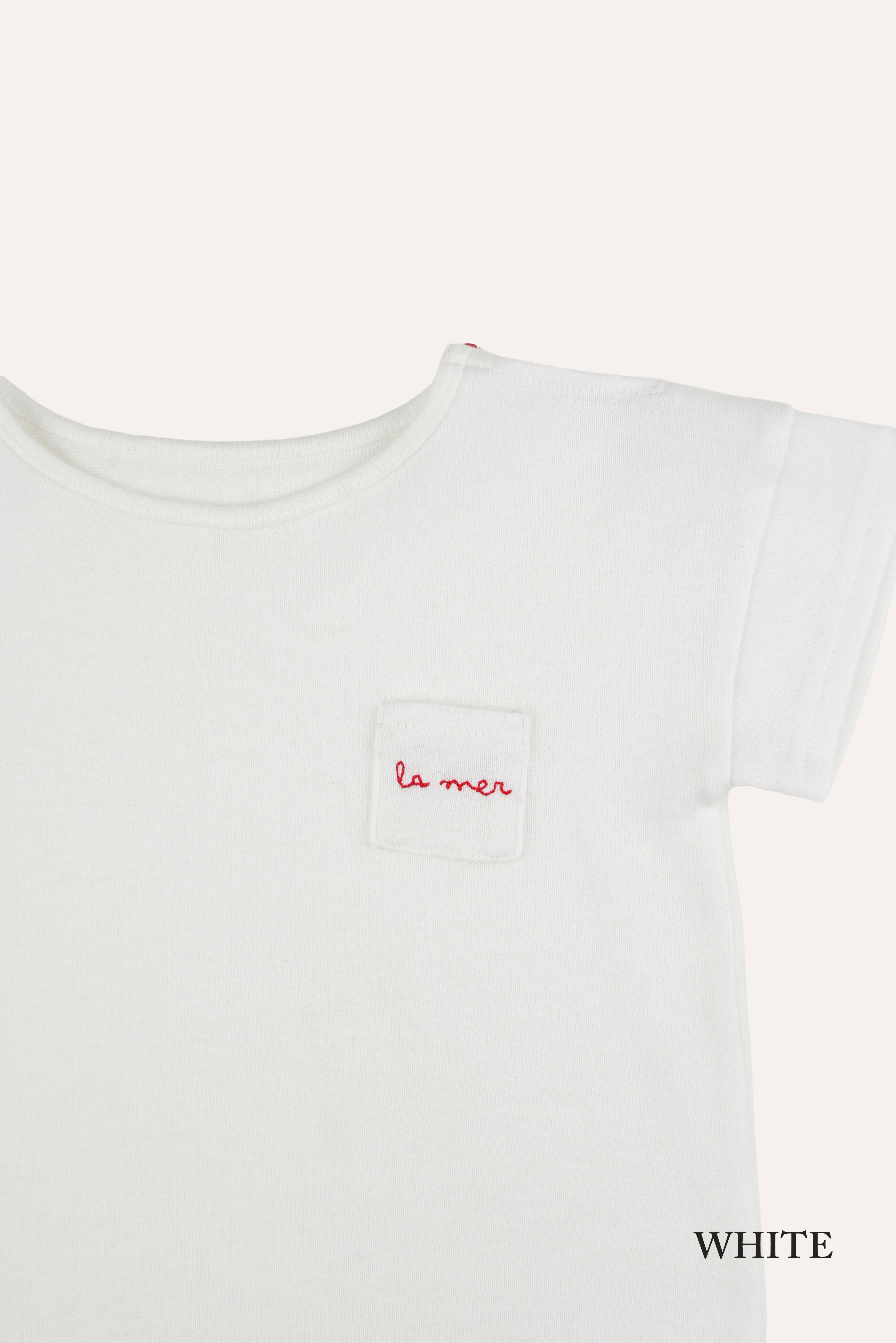 シンプルな中に、さりげないディテールが光るTシャツ。胸元の小さなポケットや刺繍が、ほどよいアクセントになった一枚です。
