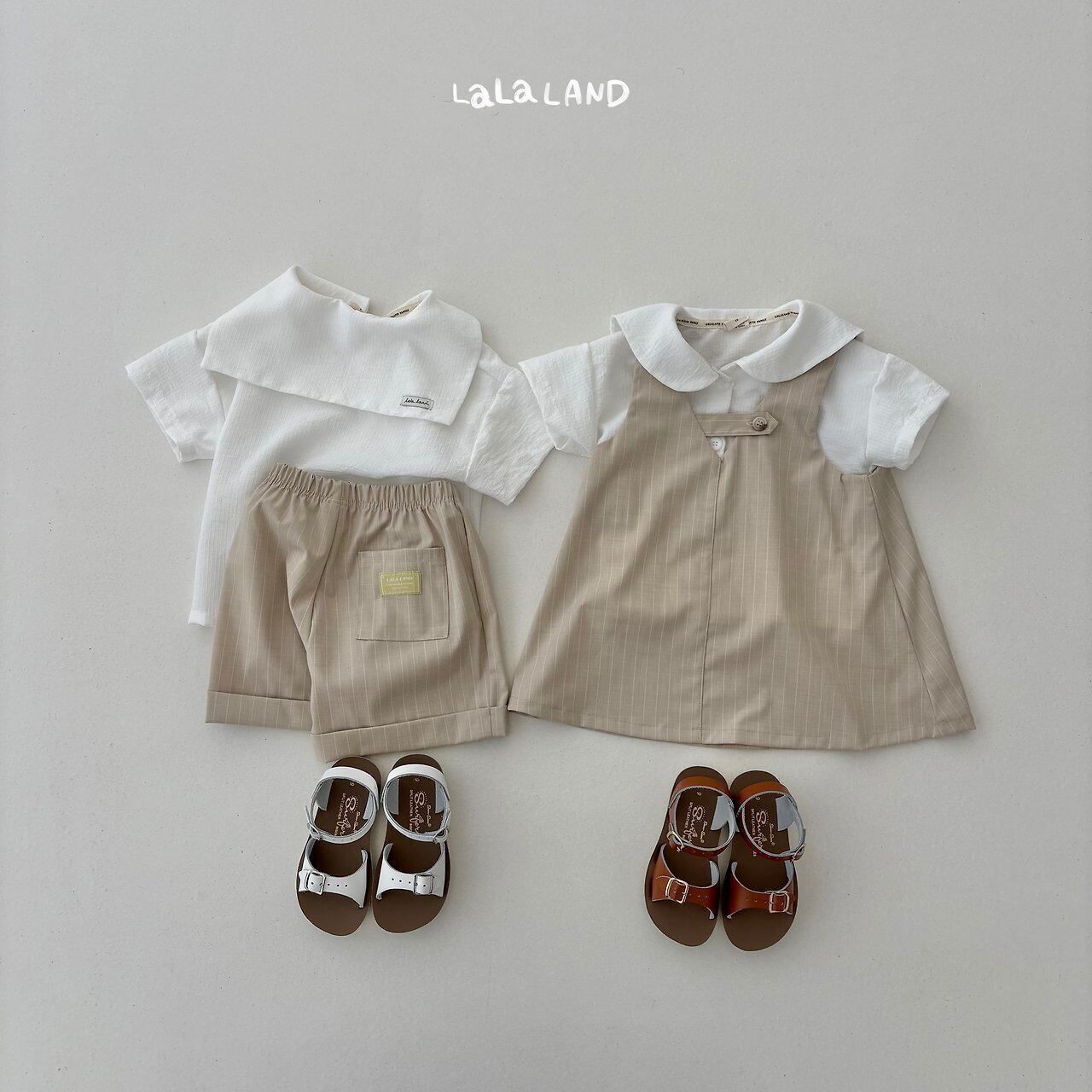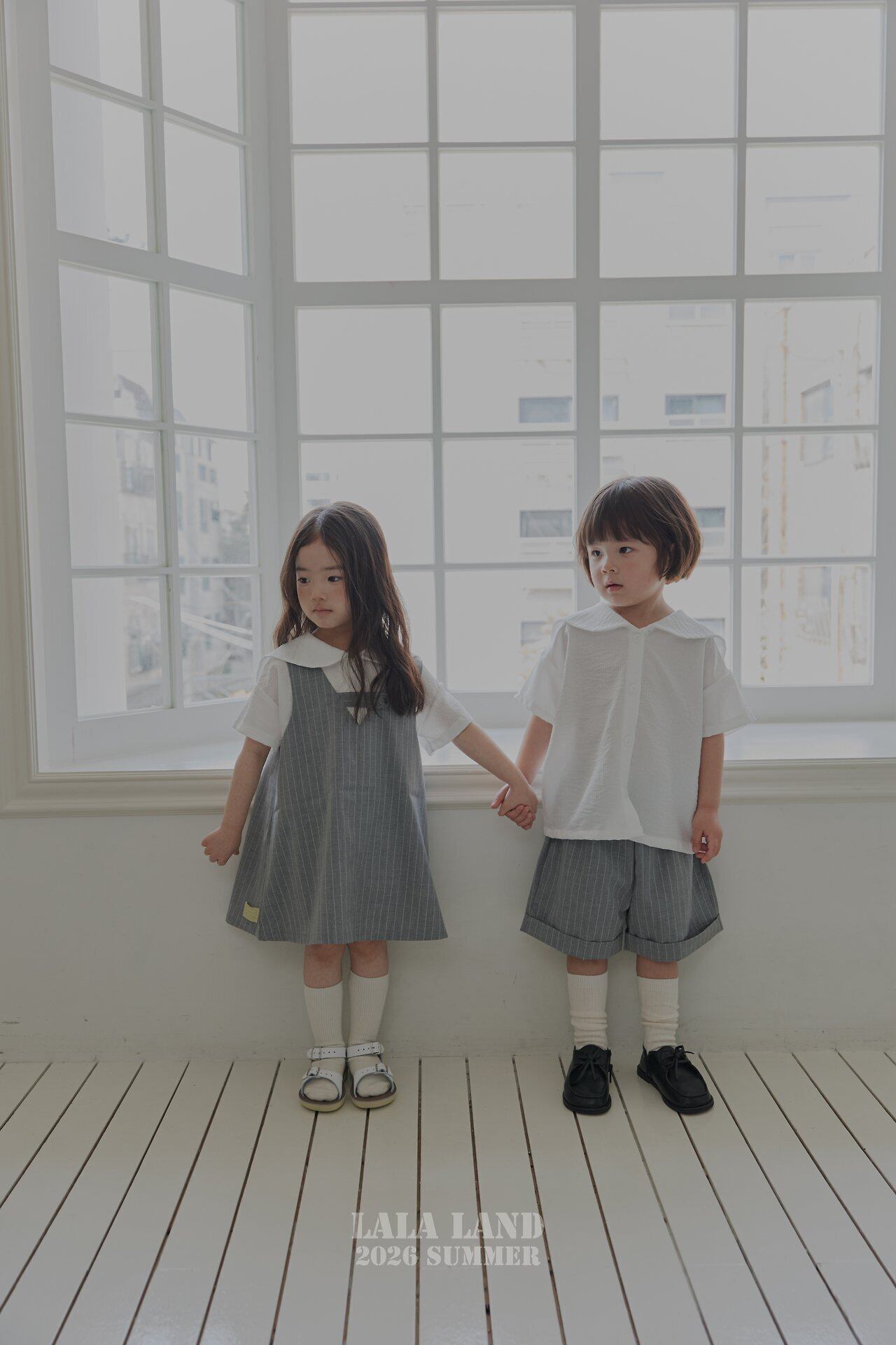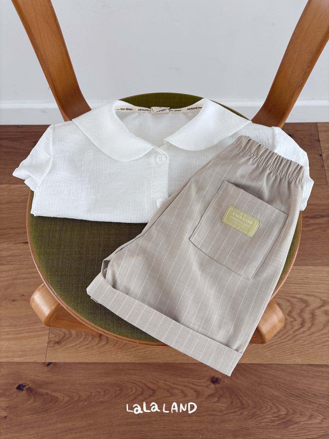 上品なストライプ柄と折り返し裾がクラシックな雰囲気を演出する、キッズ用ショートパンツ。