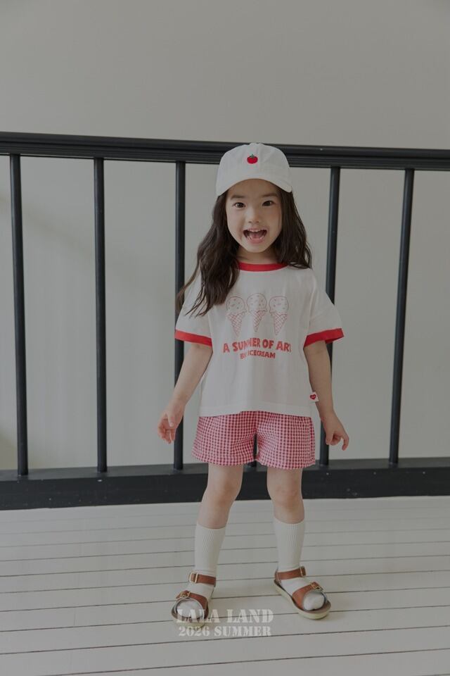 細かいギンガムチェックが夏らしい、キッズ用3分丈ショートパンツ。シワになりにくく乾きが早いジジミ高密度素材で、水遊びやアウトドアシーンでも気兼ねなく使えます。