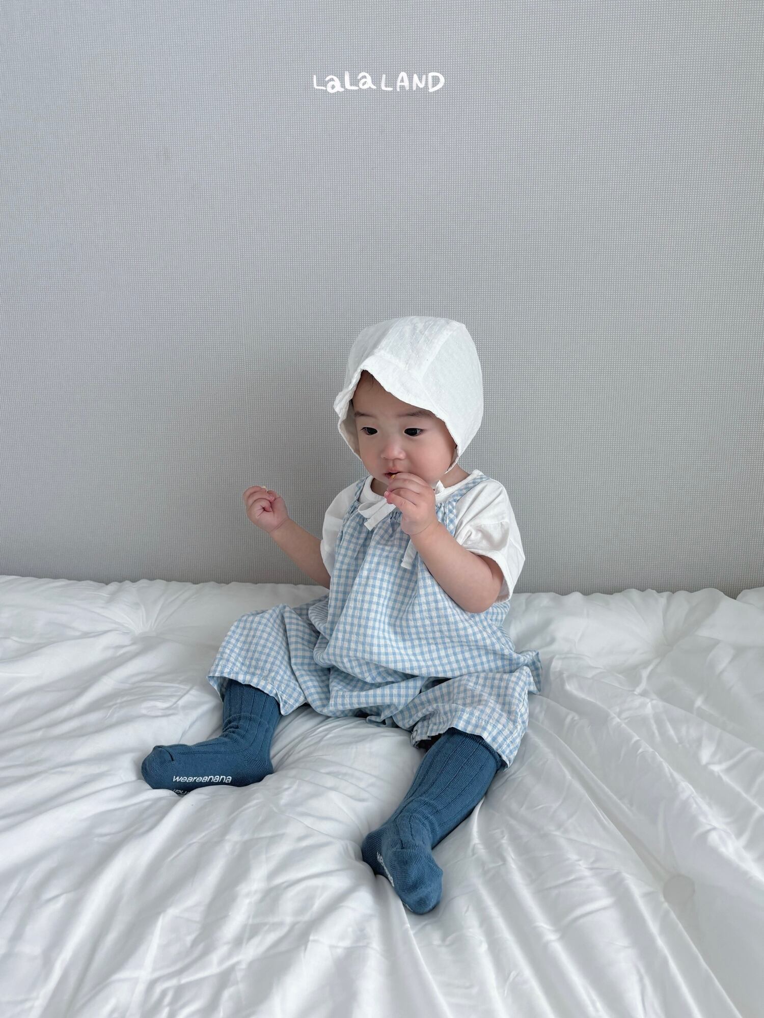 ふんわりとしたシルエットがたまらなくキュートな、ベビー用サロペット。細かいギンガムチェックのコバンチェック素材が、クラシックでおしゃれな雰囲気を演出します。