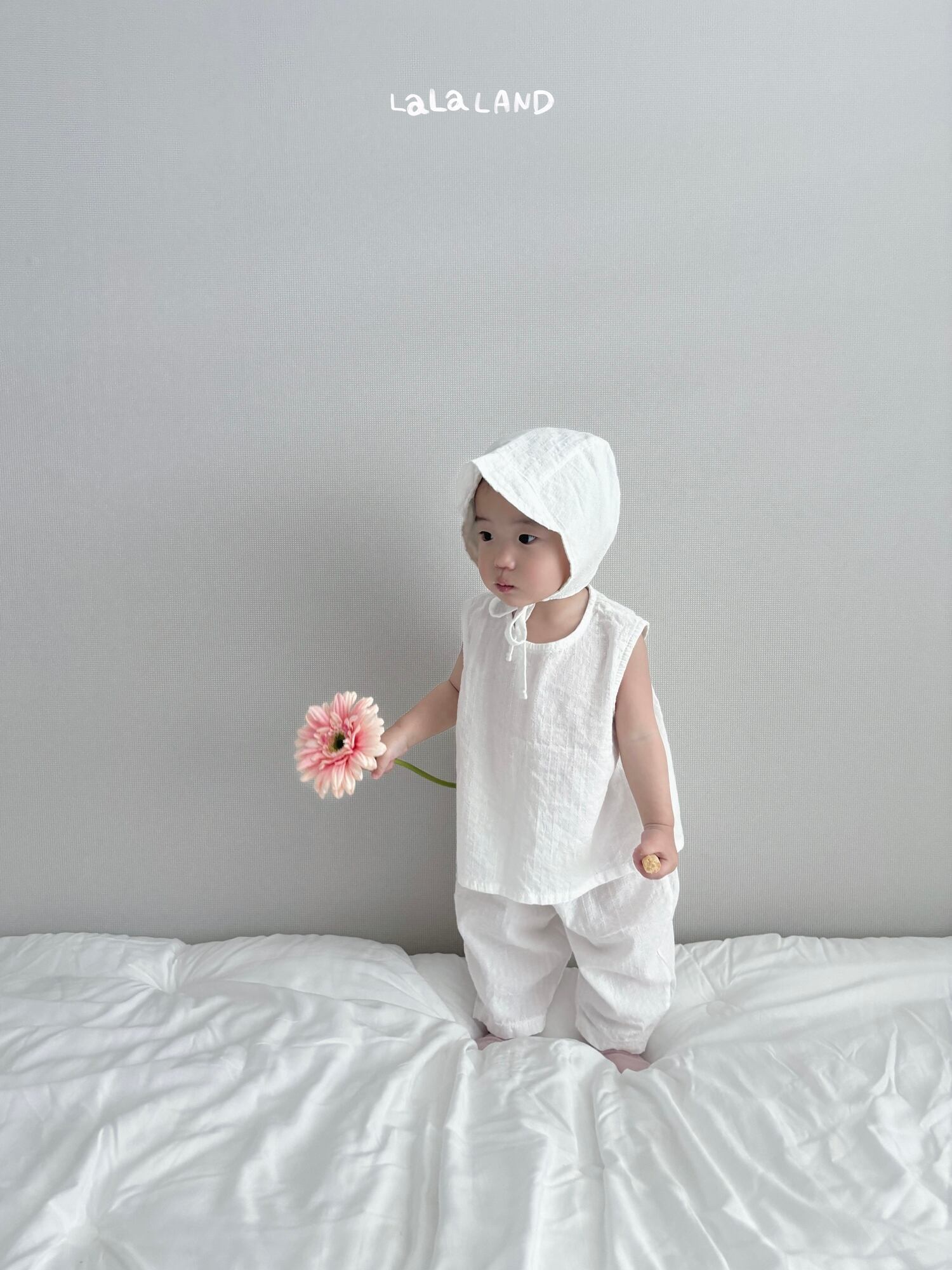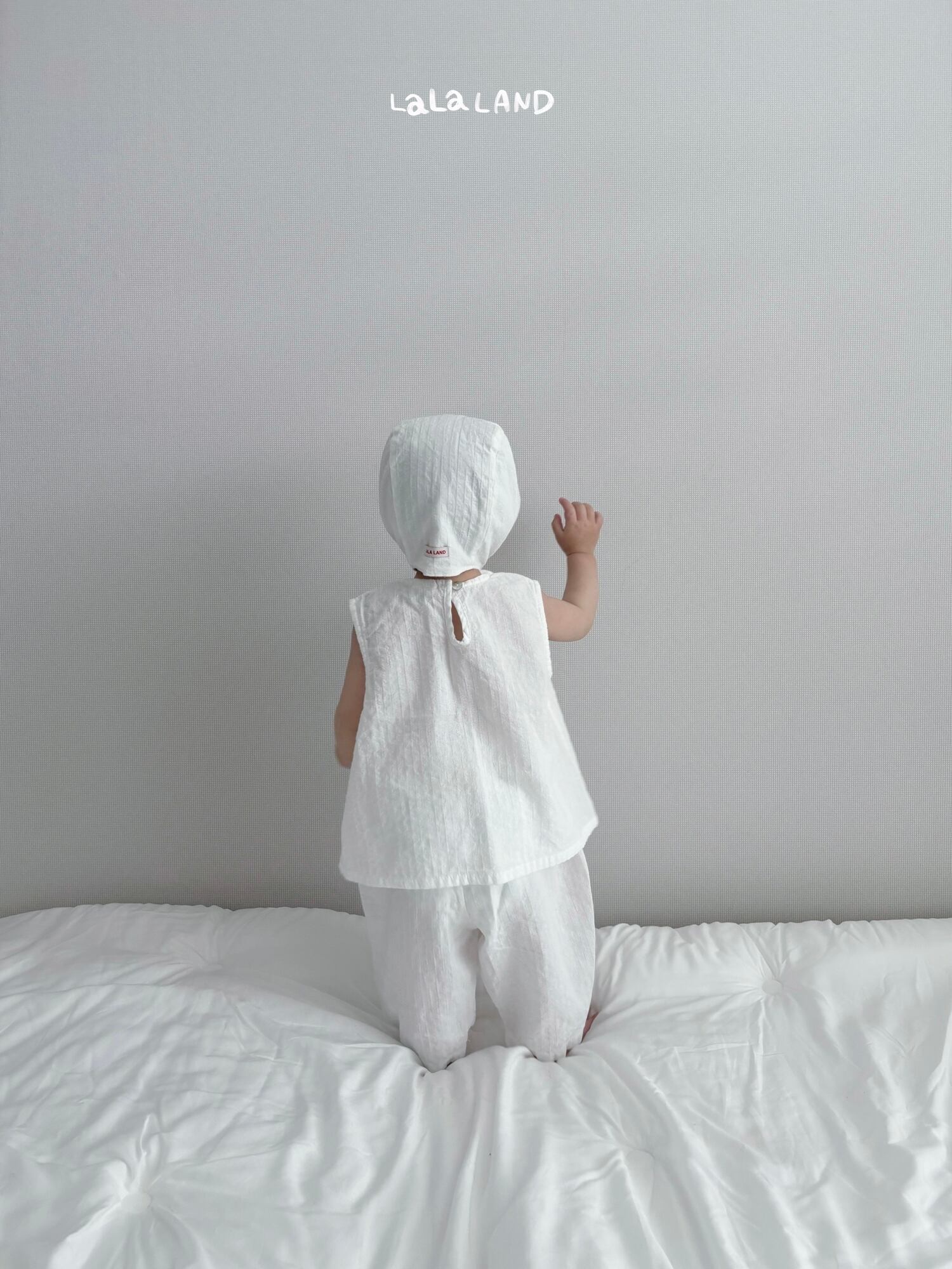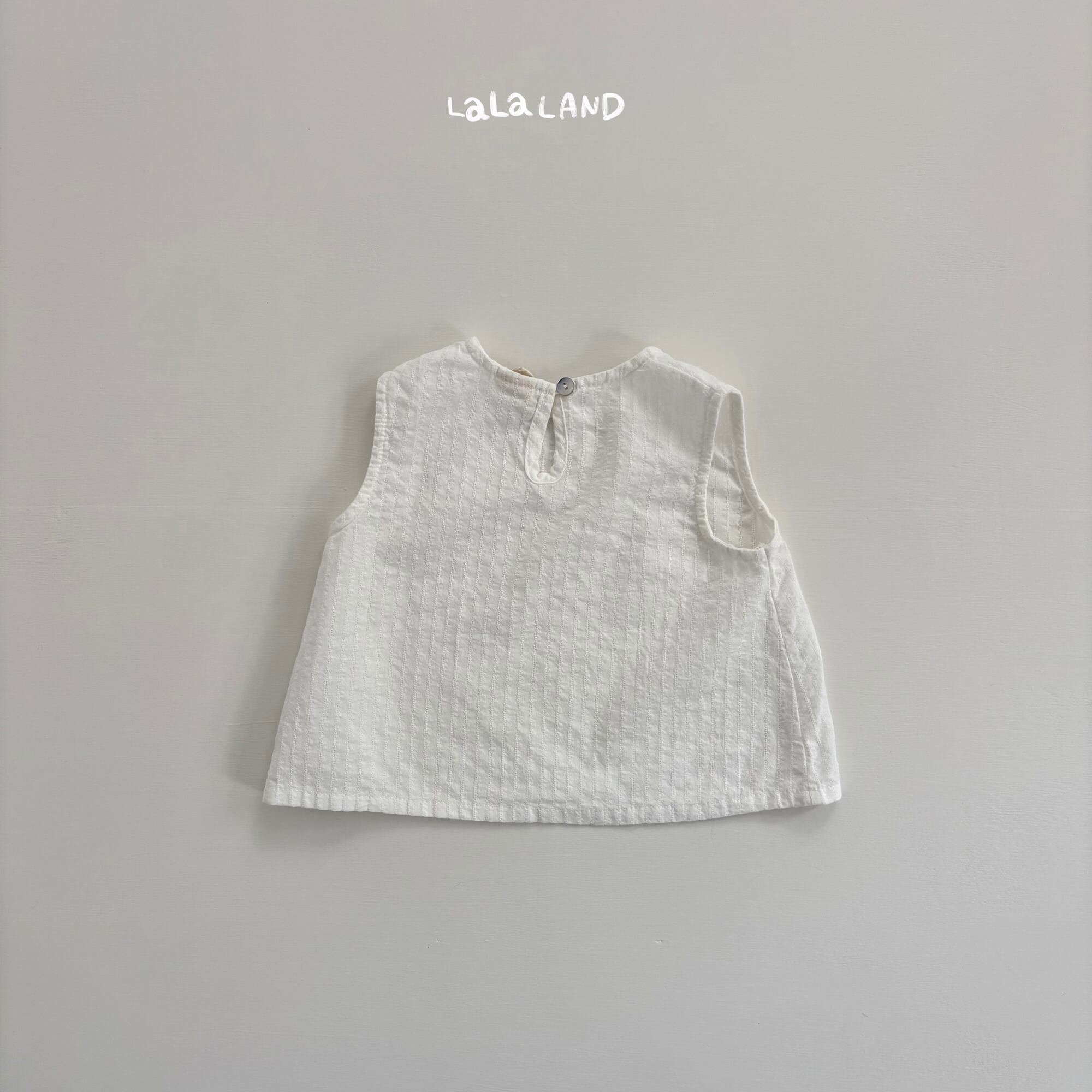 ふわりとしたAラインシルエットが愛らしい、ベビー用ノースリーブブラウス。やわらかくて軽い綿素材を使用しており、見た目にも涼しげで夏のデイリーに活躍してくれる一枚です。