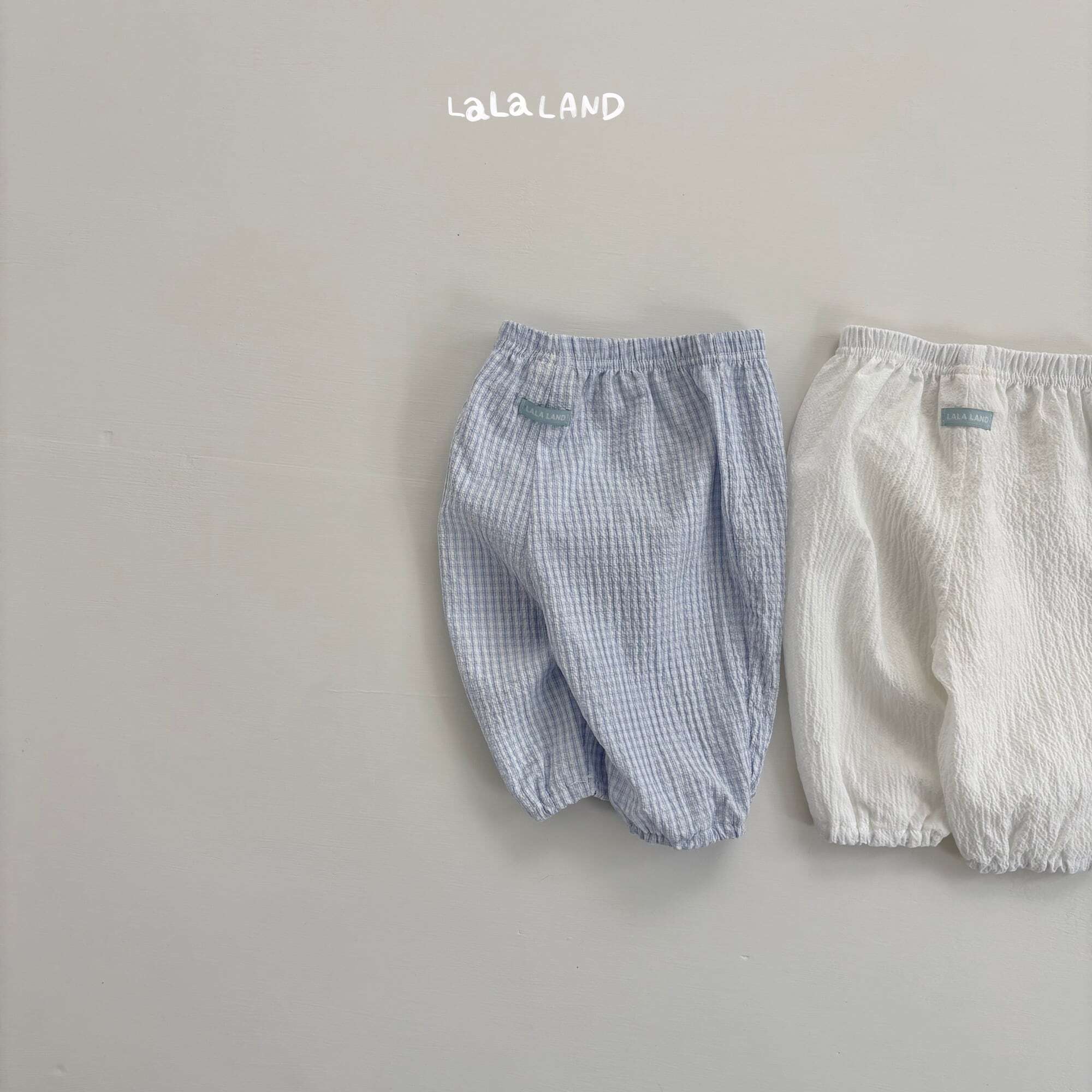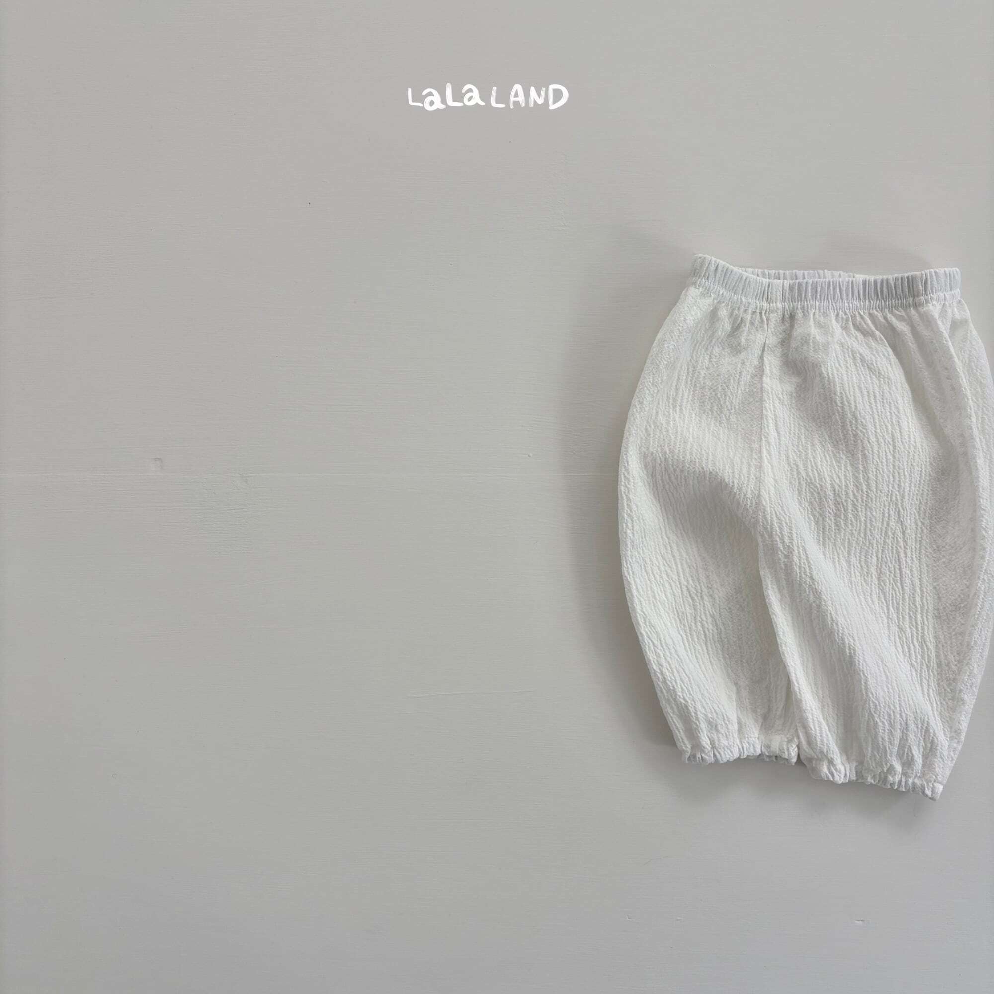 やわらかなガーゼ素材がふんわりと広がる、ベビー用バルーンパンツ。シワ感のある軽やかなテクスチャーが、見た目にも涼しげで夏らしい雰囲気を演出します。