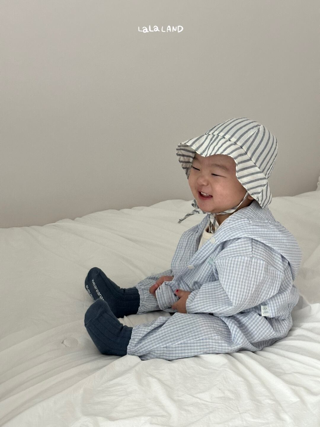 ウエストはゴム仕様で赤ちゃんも快適に過ごせます。後ろのウエスト部分のポイントラベルもさりげないこだわりです。